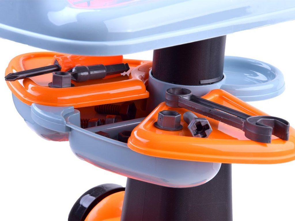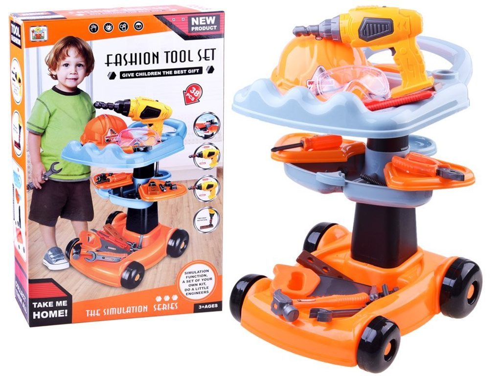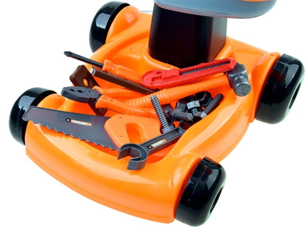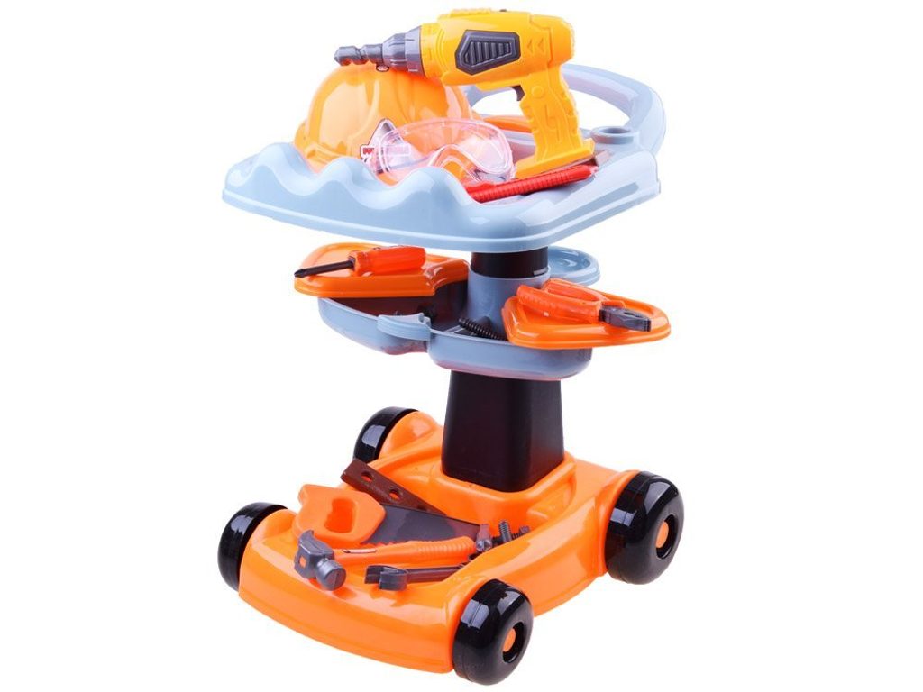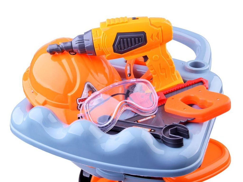 Kompletně vybavený dětský vozík Tool Carry s nářadím je určen pro děti od 36 měsíců věku. Je vybaven celkem 38 elementy. Jako základ slouží vozíček s úchytem a policemi. Dále zde najdete funkční vrtačku na baterie s nástavci. Pomocí přiloženého nářadí jako je šroubovák, pilka, klíč a kladívko může dítě spojovat konstrukční díly, které jsou také součástí balení tak jako šrouby a matice. Pro ochranu dítěte slouží helma a ochranné brýle. Je vyroben z kvalitního plastu v pestrobarevném provedení.
