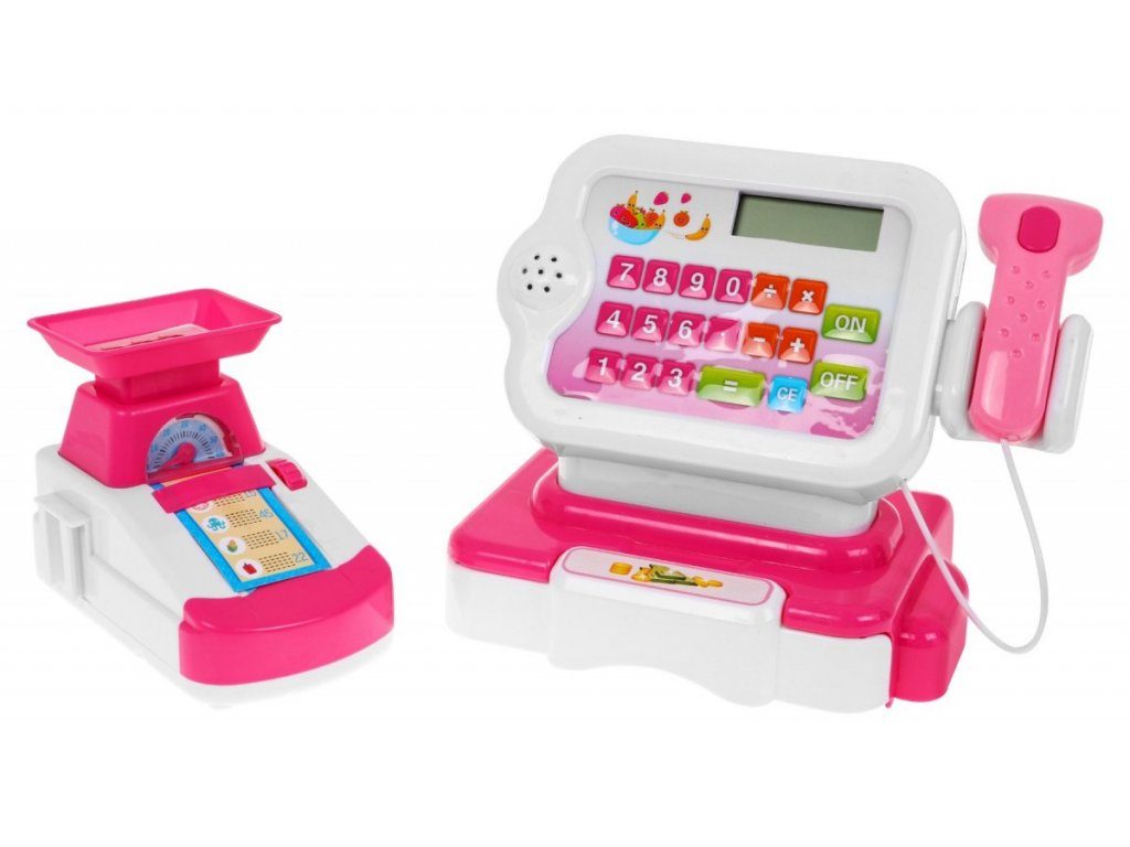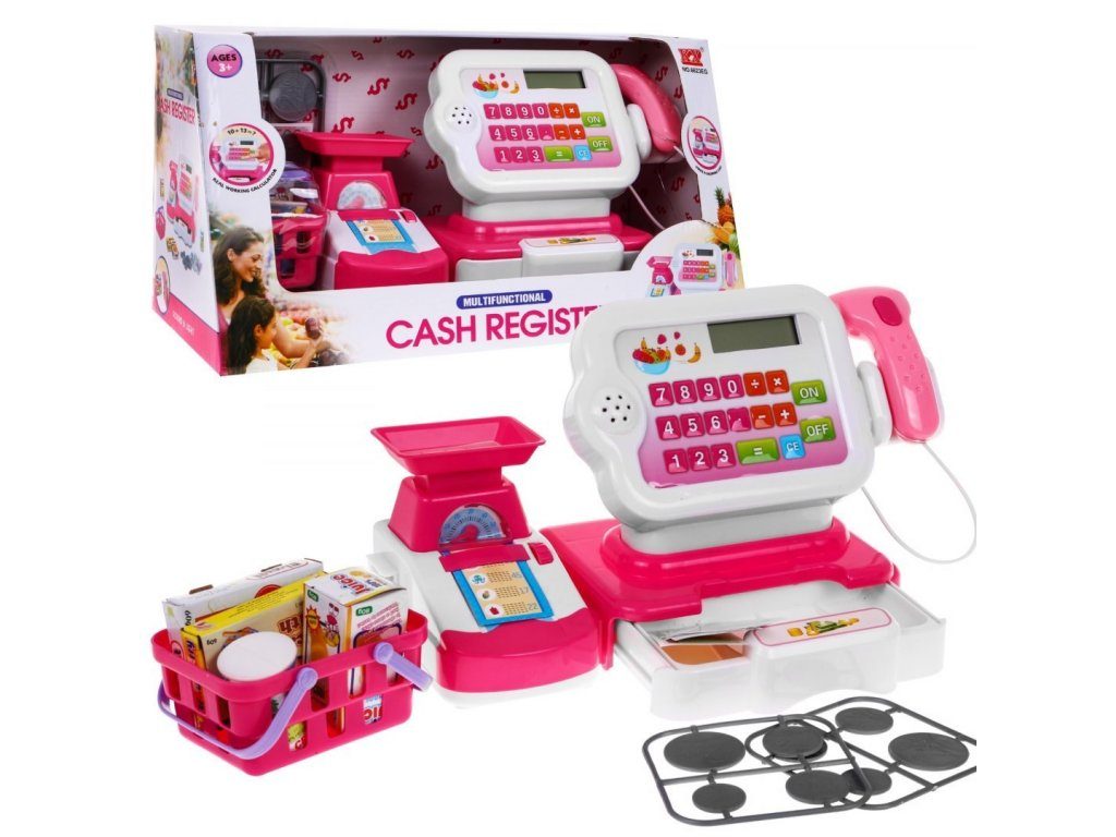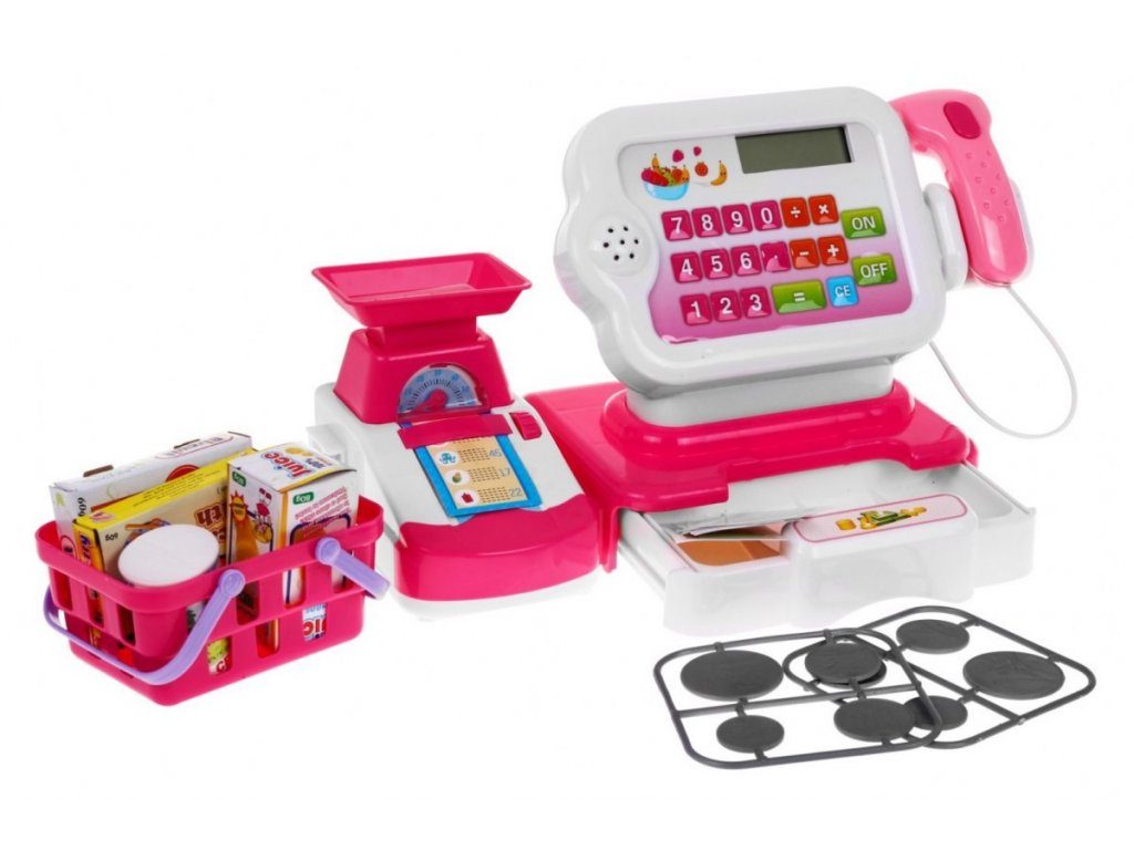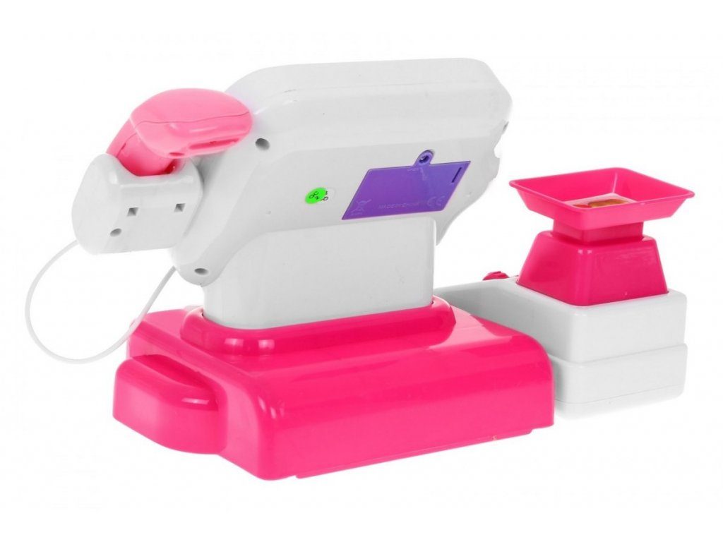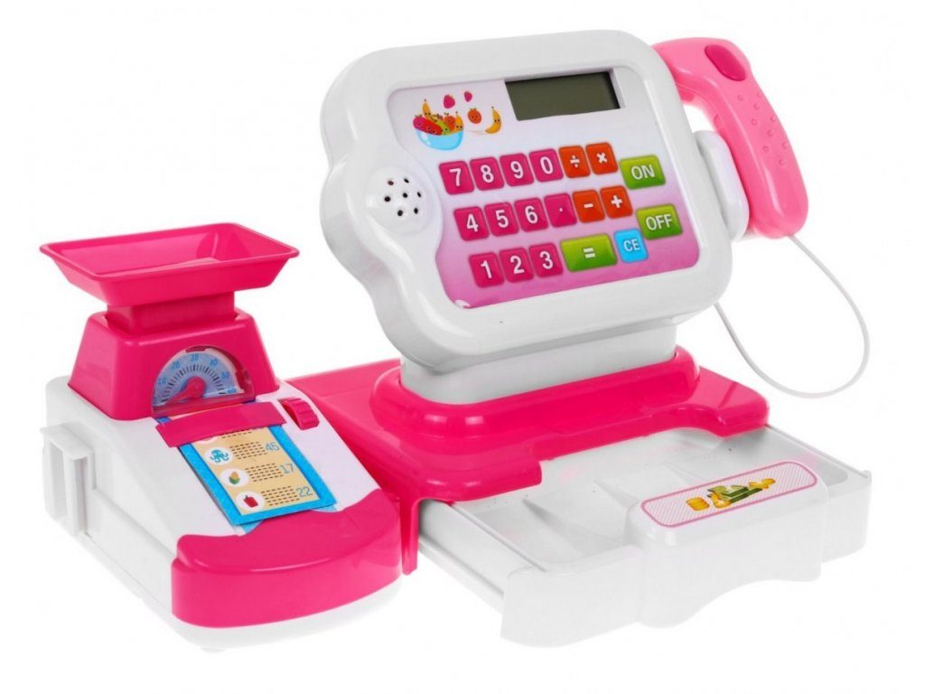 Dětská elektronická pokladna s váhou a displejem přemění Vaše dítě ve skutečnou pokladní. Je vybavena displejem, který má funkci kalkulačky. Ve spodní části je umístěna výsuvná přihrádka na bankovky a mince, které jsou také součástí balení. Pomocí funkčního skeneru lze skanovat zboží, po stisknutí tlačítka se rozvítí červená dioda a ozve se charakteristické pípnutí. Součástí balení je také nákupní košíček s imitacemi potravin. V levé části pokladny je umístěna váha. Hračka je určena pro děti od 36 měsíců věku.