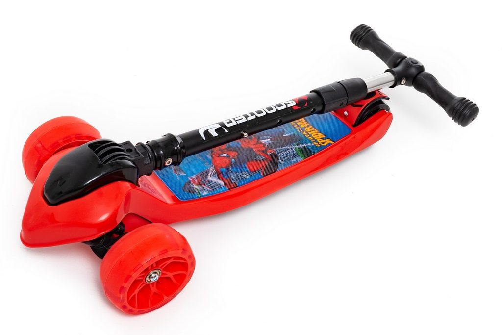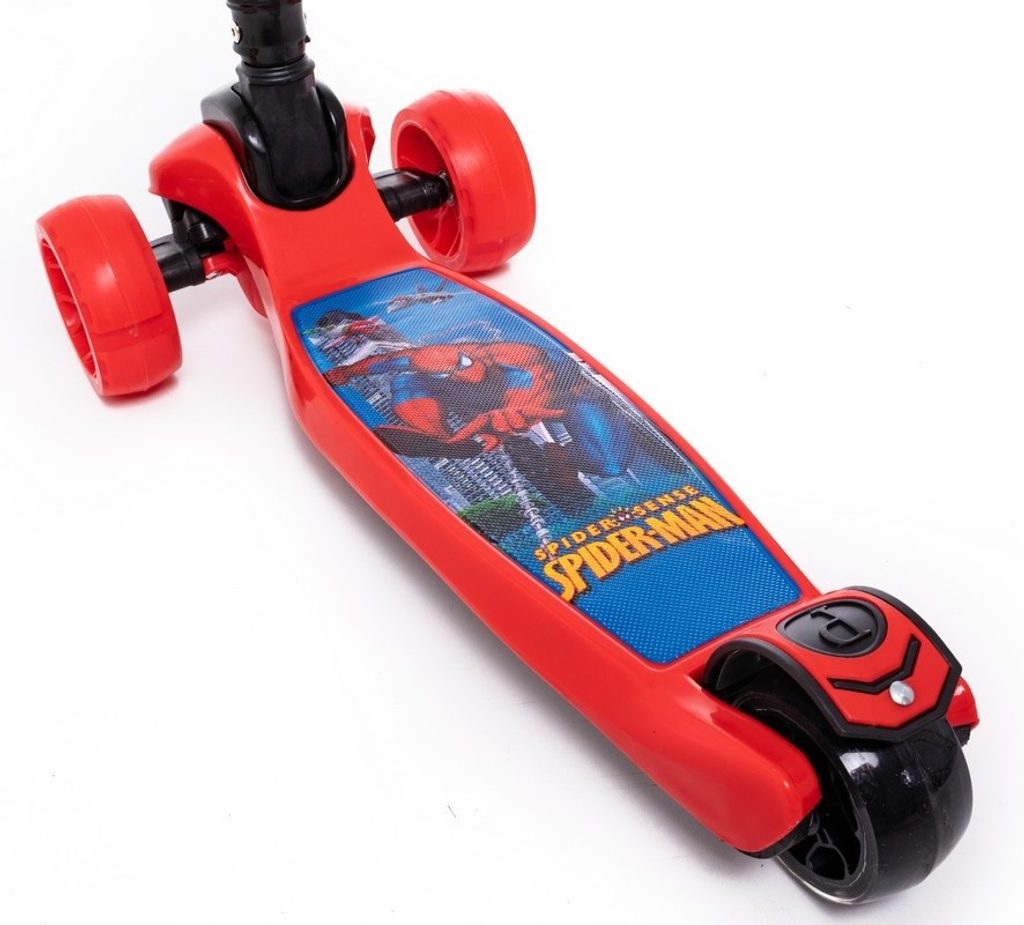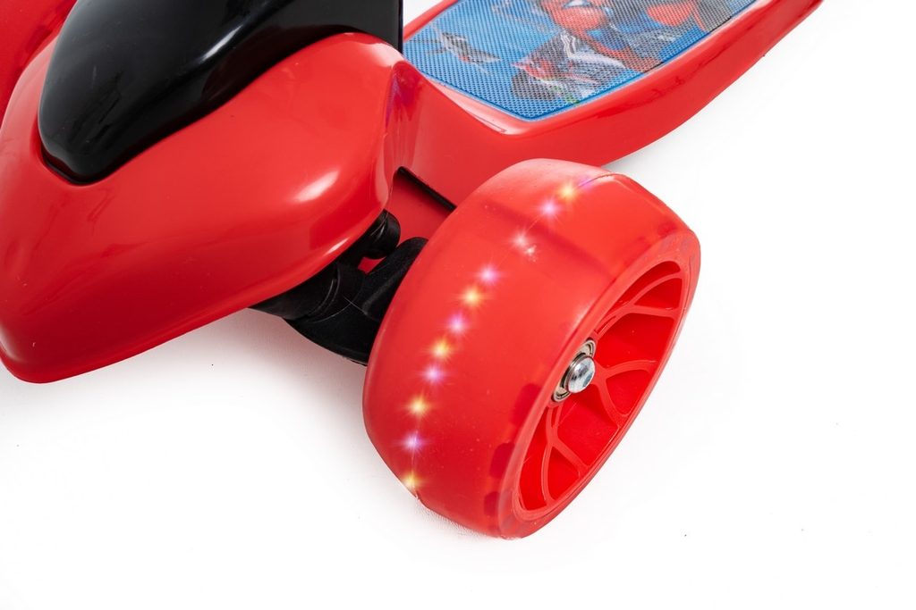 Dětská balanční koloběžka Spider se svítícími koly. Je osazena tichými protiskluzovými koly s LED světly, které svítí během jízdy. Řídítka mají nastavitelnou výšku a protiskluzovou úpravu rukojeťí. Zatáčení probíhá na principu pohybu těla - nakláněním. V zadní části je umístěn blatník, který slouží jako nožní brzda. Koloběžka je určena pro děti od 3 let věku a 25 kg hmotnosti.