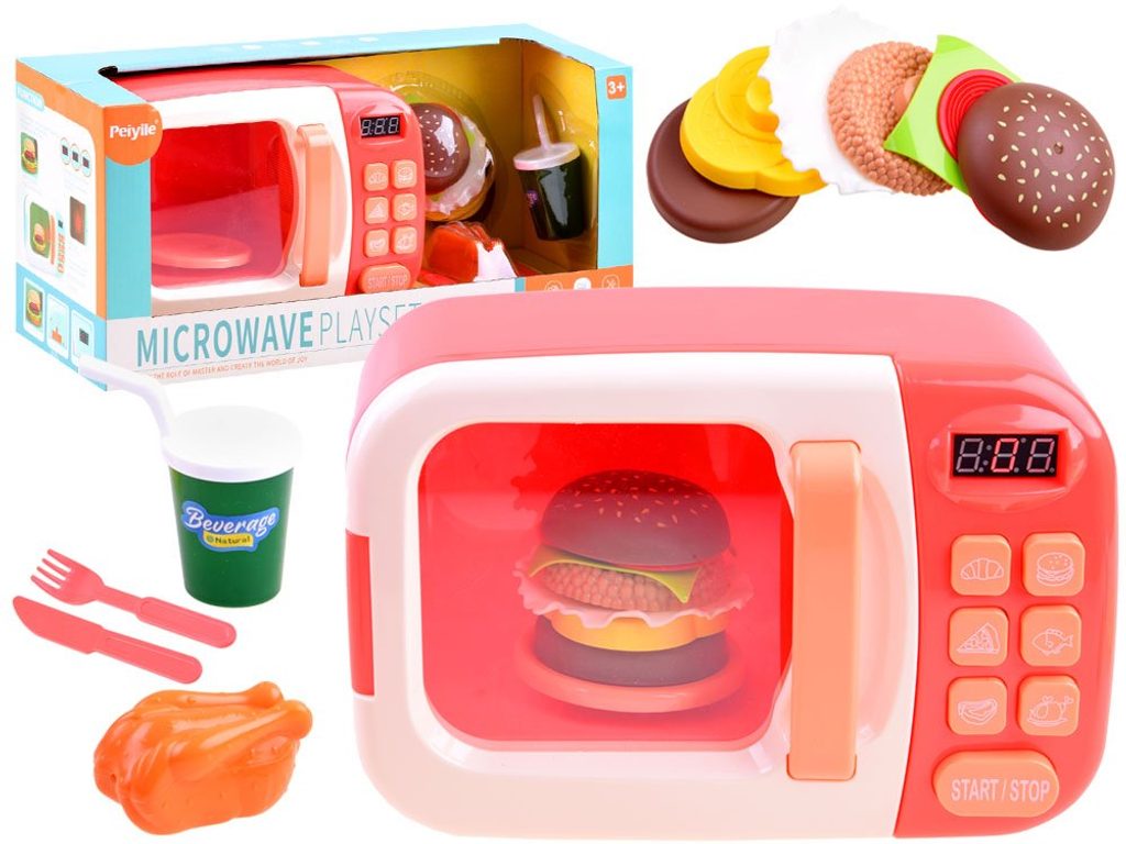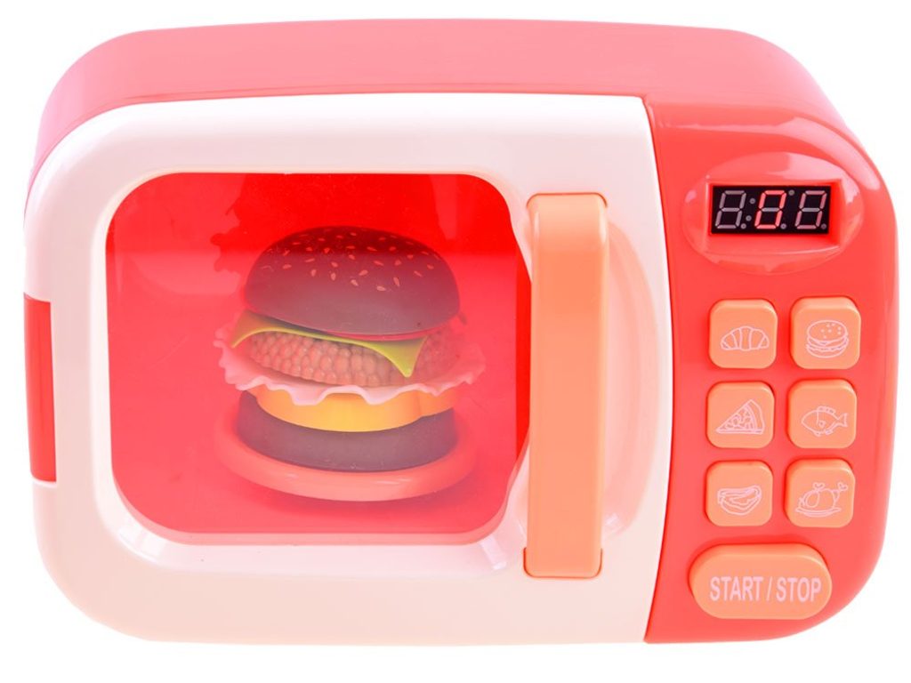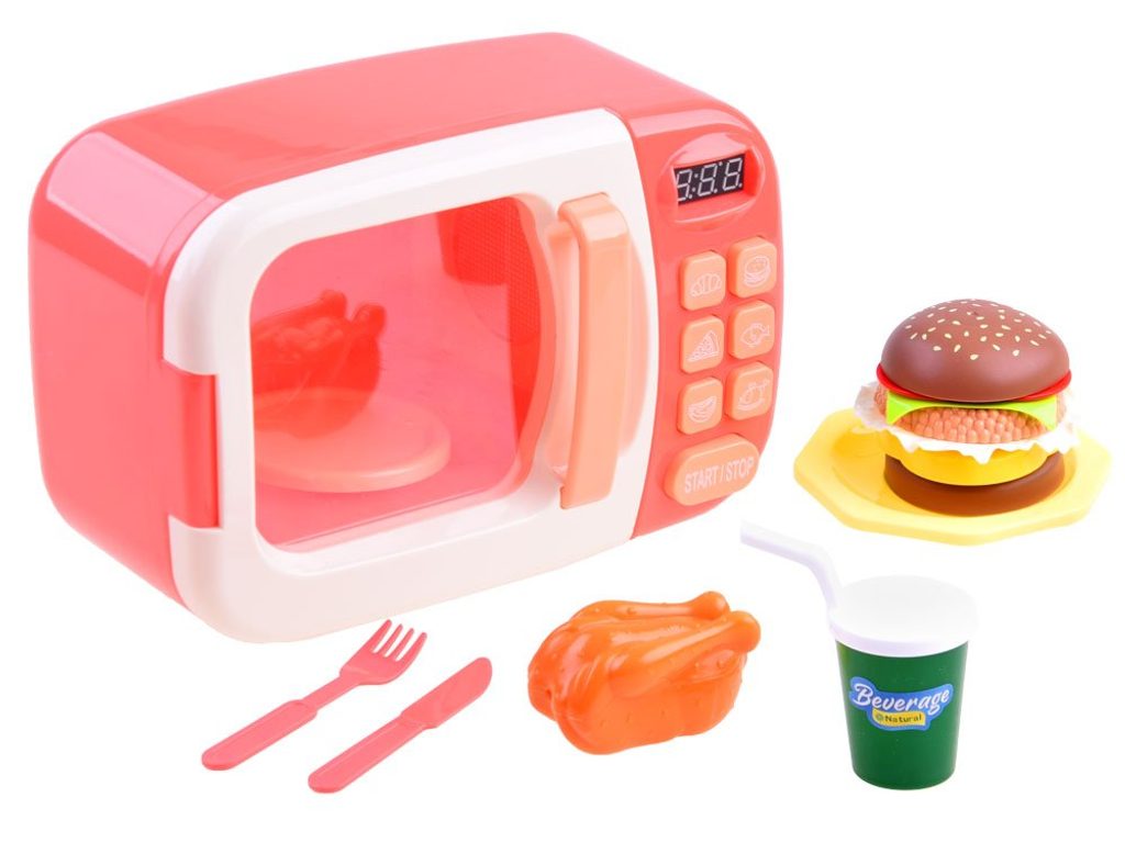Dětská mikrovlnná trouba Kids Microwave umožní Vašemu dítěti "ohřát" jakékoliv jídlo jako ve skutečné kuchyni. Součástí sady jsou kromě samotné trouby také příbory, talířek, kelímek s nápojem, hamburger a kuře. Tlačítka v přední části umožnují výběr pokrmu pro ohřátí. Po zapnutí se talíř uvnitř otáčí a také se spustí vnitřní světlo. Hračka je určena pro děti od 36 měsíců věku.