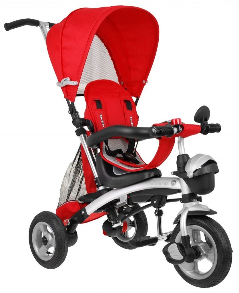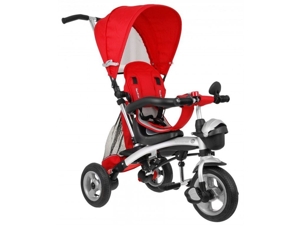 Dětská tříkolka Sportrike AIR s nafukovacími koly je určena pro děti od 1 do 5 let. Vybavena praktickou odnímatelnou stříškou proti slunci a dešti. Sedadlo lze otočit jak ve směru tak po směru jízdy. Po demontáži vodící tyče a stříšky lze využít jako kolo pro nejmenší. V zadní části je umístěn velký koš na hračky, v přední části potom plastový uzavíratelný košík. Tříkolka má pevnou ocelovou konstrukci a odolná nafukovací kola usazená v pevných plastových ráfcích. Madlo a bezpečnostní pásy zabraňují vypadnutí dítěte z kočárku. Konce řídítek mají protiskluzovou úpravu. Pro větší bezpečnost mohou tříkolku řídit rodiče pomocí regulavatelné o odnímatelné vodící tyče. Zadní kola mají 2 nezávislé brzdy.