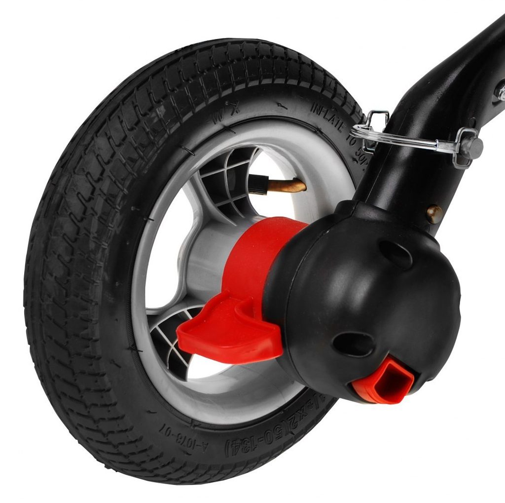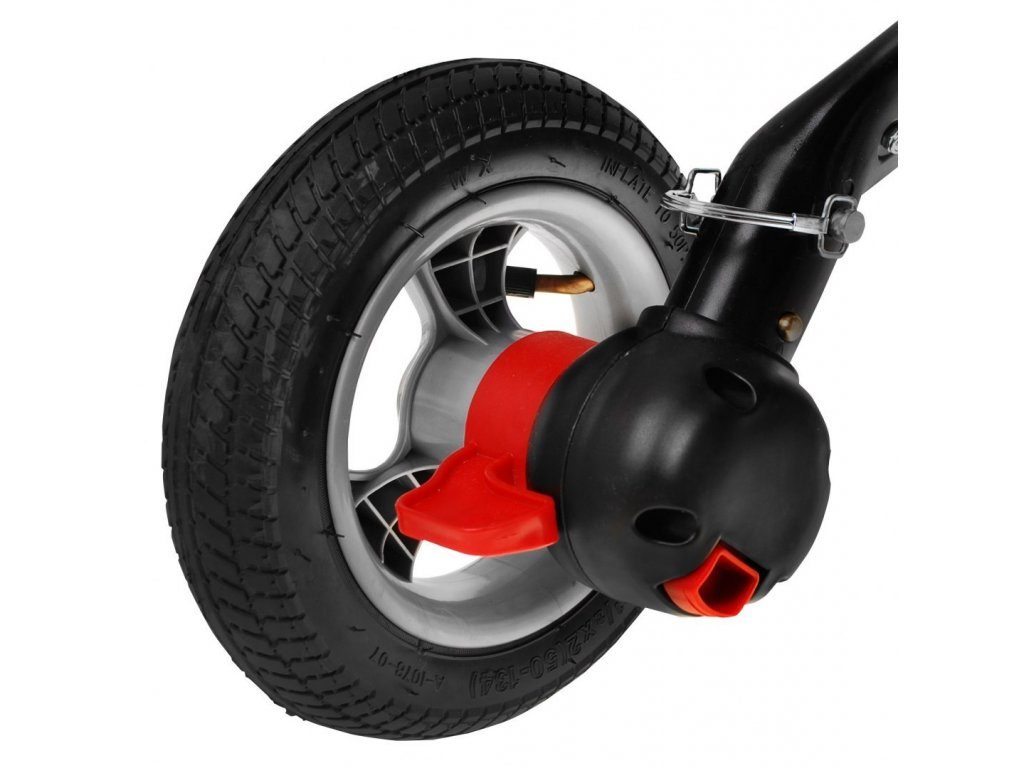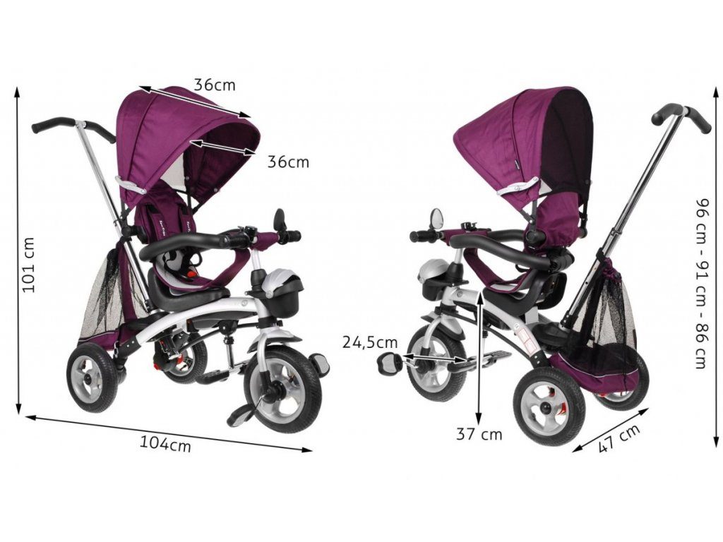 Dětská tříkolka Sportrike AIR s nafukovacími koly je určena pro děti od 1 do 5 let. Vybavena praktickou odnímatelnou stříškou proti slunci a dešti. Sedadlo lze otočit jak ve směru tak po směru jízdy. Po demontáži vodící tyče a stříšky lze využít jako kolo pro nejmenší. V zadní části je umístěn velký koš na hračky, v přední části potom plastový uzavíratelný košík. Tříkolka má pevnou ocelovou konstrukci a odolná nafukovací kola usazená v pevných plastových ráfcích. Madlo a bezpečnostní pásy zabraňují vypadnutí dítěte z kočárku. Konce řídítek mají protiskluzovou úpravu. Pro větší bezpečnost mohou tříkolku řídit rodiče pomocí regulavatelné o odnímatelné vodící tyče. Zadní kola mají 2 nezávislé brzdy.