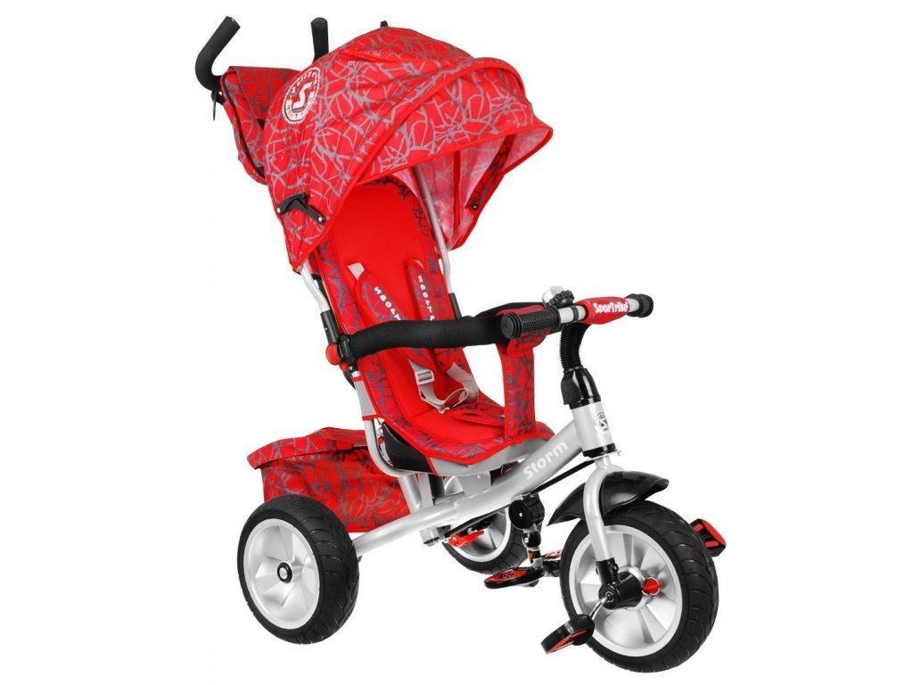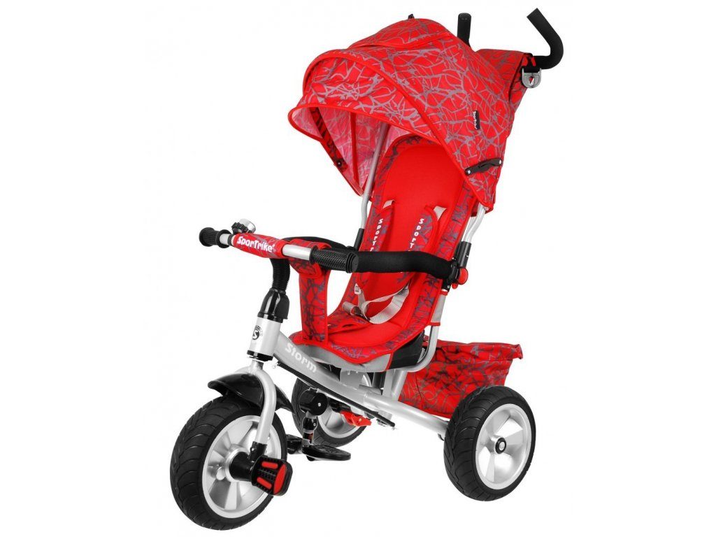 Dětská tříkolka Storm s gumovými koly je určena pro děti od 1 do 5 let a hmotnosti do 25 kg.  Je vybavena praktickou odnímatelnou stříškou proti slunci a dešti.  V zadní části vyniká velký koš na hračky, na vodící tyči je umístěna odnímatelná praktická taštička. Tříkolka má pevnou ocelovou konstrukci a odolná gumová kola naplněná vzduchem usazená v pevných plastových ráfcích. Madlo a 3bodové bezpečnostní pásy zabraňují vypadnutí dítěte z kočárku. Konce řídítek mají protiskluzovou úpravu. Pro větší bezpečnost mohou tříkolku řídit rodiče pomocí regulovatelné a odnímatelné vodící tyče. Zadní kola mají 2 nezávislé brzdy.