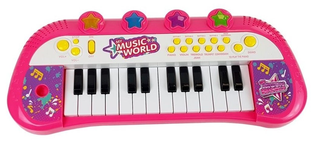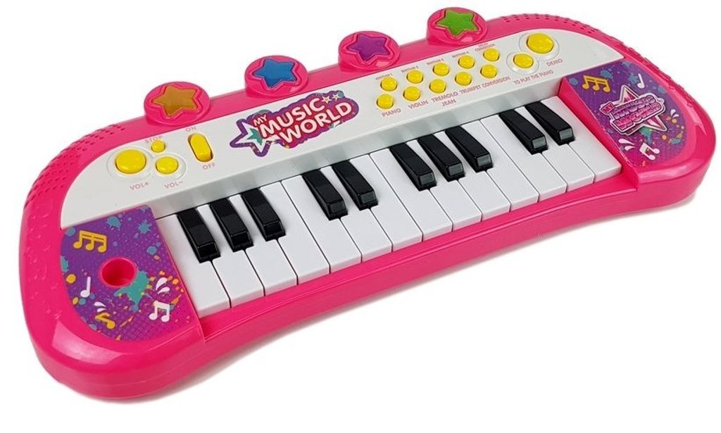 Multifunkční dětské klávesy My Music World jsou vybaveny 24 klávesami a dalšími funkčními tlačítky. Dítě může využít zvuků 4 různých hudebních nástrojů, zvuky bicích nástrojů a tlačítka 4 různých rytmů. Součásti kláves je i tlačítko demo s přednastavenými skladbami. Hlasitost kláves lze regulovat. Hru doprovázejí blikající světýlka. Hračka je určena pro děti od 3 let věku.