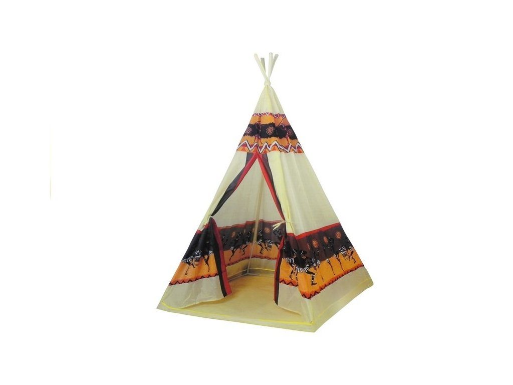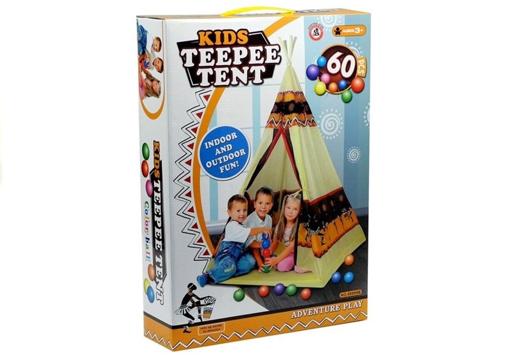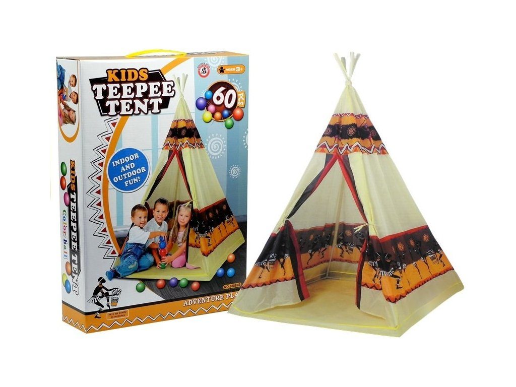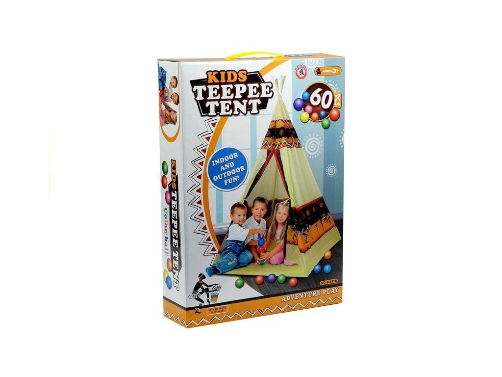 Majlo Toys dětský indiánský stan TeePee v provedení s obrázky indiánů. Je vhodný jak do vnitřních prostor tak i pro venkovní použití. Vchod do stanu je rolovací, můžete tak nastavit množství světla, které bude pronikat dovnitř stanu. Konstrukce stanu je plastová, svrchní materiál je bavlna. Montáž stanu je velmi a snadná a rychlá, což oceníte zejména při jeho přemist'ování.Součástí balení je 60 kusů plastových míčků o průměru 60 cm.