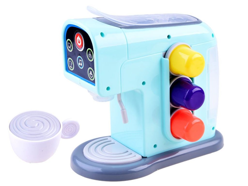 Dětský kávovar Kids Coffee umožní Vašemu dítěti uvařit kávu pro své oblíbené panenky nebo pro rodiče. Součástí sady je kapslový kávovar, hrneček a 3 různé kapsle s kávou. Kávovar je dále vybaven tlačítkem vypnuto/zapnuto, zvukovými efekty a podsvícením. Hračka je určena pro děti od 36 měsíců věku.