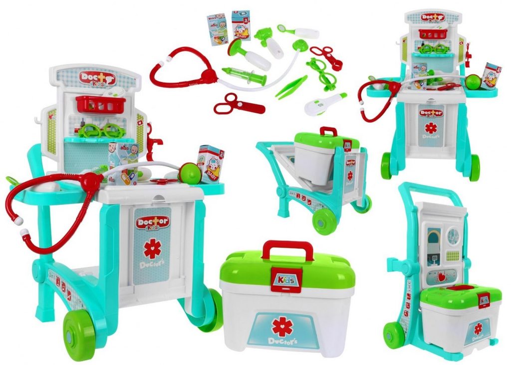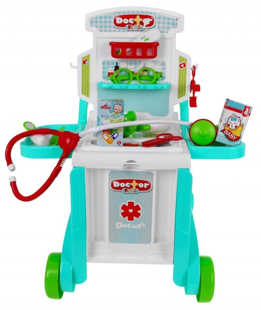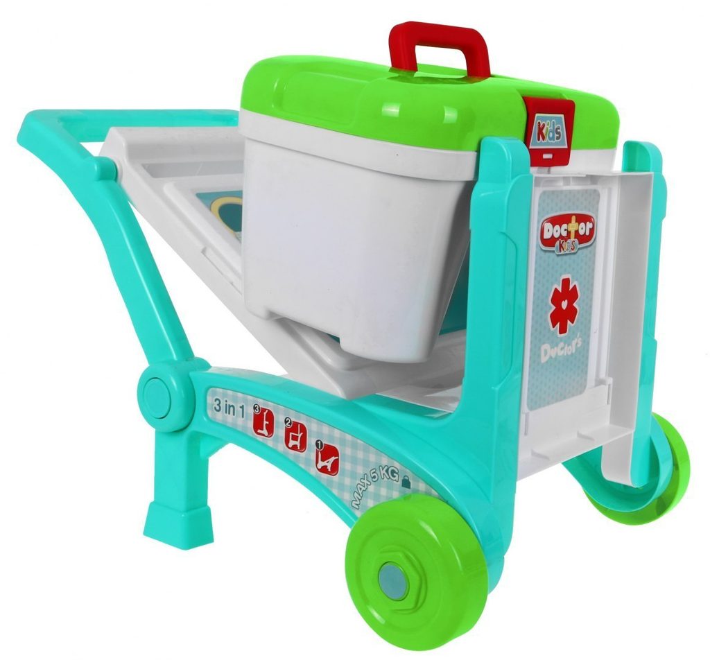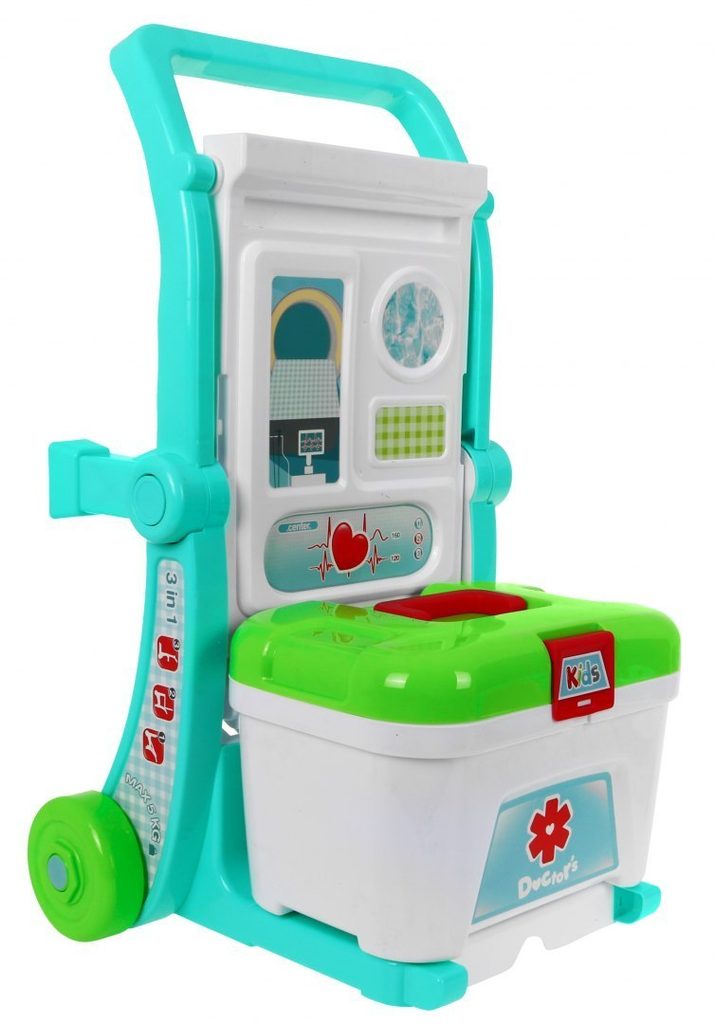 Dětský lékařský vozík 3v1 Little Doctor je určen pro děti od 36 měsíců věku. Lze ho využít jako vyšetřovací stůl s bočními policemi a zadním panelem s policemi a věšáky nebo ho můžete přeměnit na 2 různé typy vozíčků. Pro snadné přemísťování je vybaven kolečky a pohodlným úchytem. Součástí vozíčku jsou lékařské nástroje jako jsou teploměr, lékařské brýle, pinzeta, neurologické kladívko a mnoho dalších užitečných věcí, které potřebuje malý doktor nebo doktorka ke své práci. Příslušenství můžete také uložit do lékařského kufříku. Vaše dítě se určitě s touto velkou hračkou nudit nebude a návštěva u skutečného doktora pro něj nebude tolik stresující. Je vyroben z kvalitního plastu v pestrobarevném provedení.