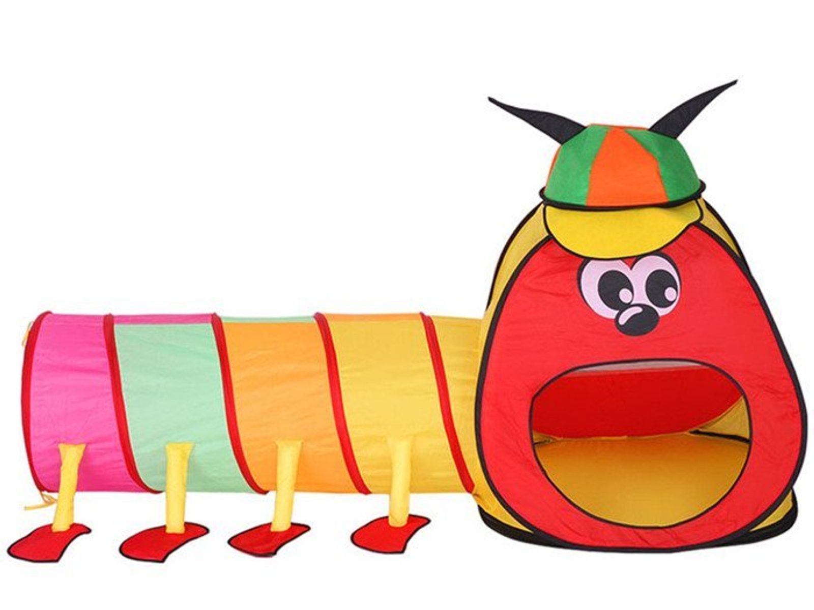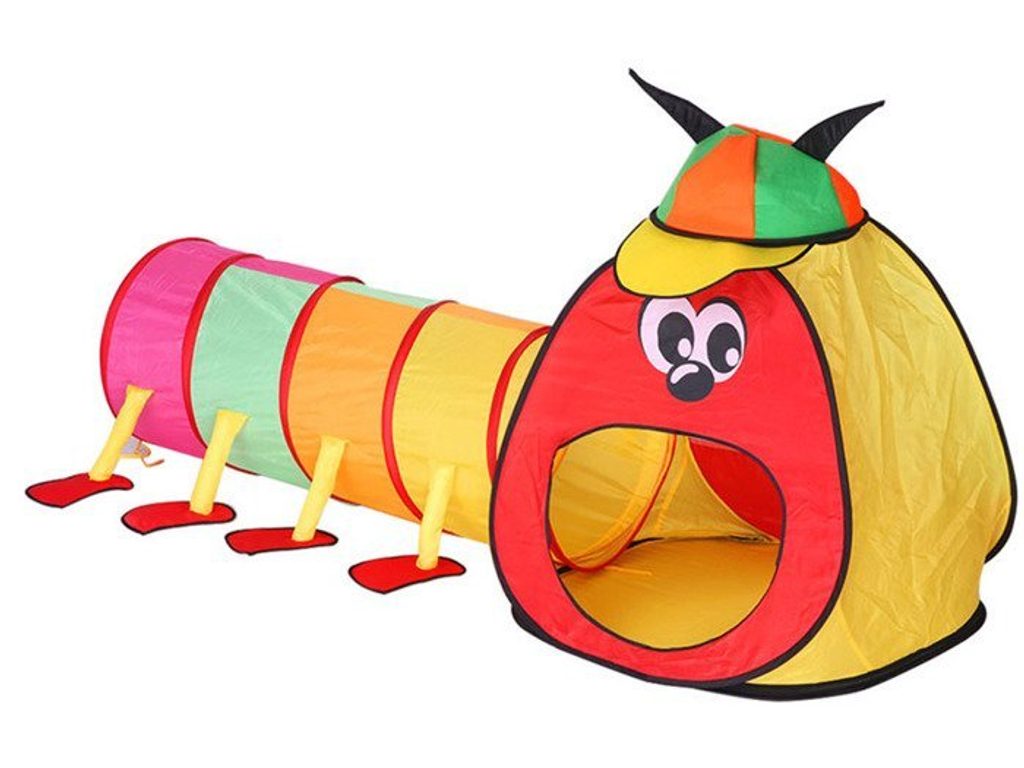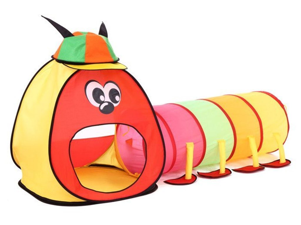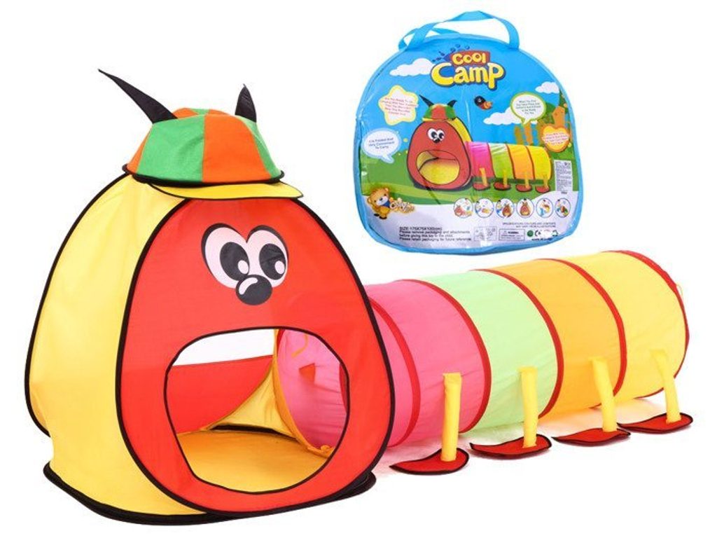 Dětský stan Veselá stonožka se skládá ze stanu, který má zadní stranu ze síťoviny a tunelu. Díky nepromokavé podlaze je vhodný jak do vnitřních prostor tak i pro venkovní použití. Stany mají 2 vchody, kdy jeden z nich slouží na připojení tunelu. Svrchní materiál je polyester v pestrobarevném barevném provedení. Montáž stanu je velmi snadná a rychlá, což oceníte zejména při jeho přemísťování.