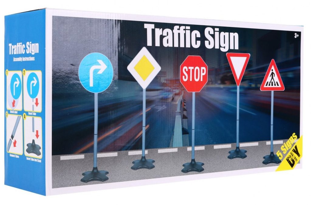 Sada dopravních značek uspokojí každého malého řidiče. Lze je využít venku i doma. Snadno se rozkládají a můžete je rozmístit do podoby jakékoliv křižovatky nebo cesty. Dítě se s nimi snadno naučí pravidla provozu a jsou ideální pro jízdu na kole nebo v elektrickém vozítku. Hračka je určena pro děti od 3 let věku.