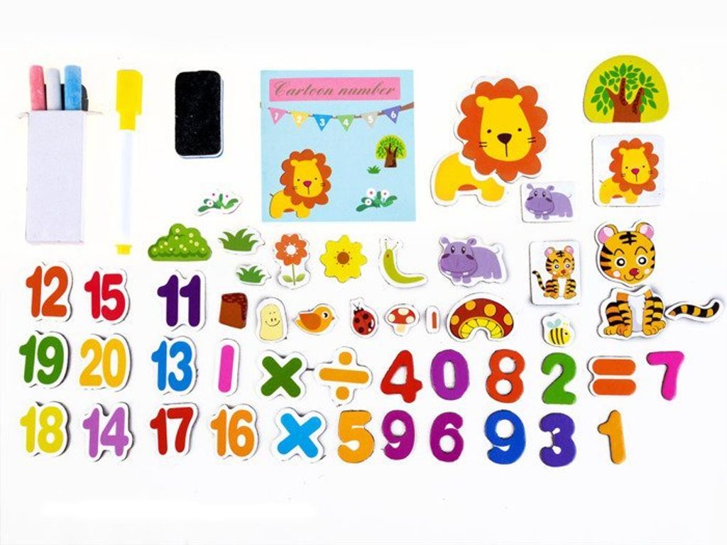 Dřevěná multifunkční magnetická tabulka Puzzle Board učí dítě porozumět číslům a písmenům. Má dvě možnosti využití a to jako klasickou kreslící tabuli, kdy součástí balení je křída a malinká houbička nebo ho lze využít jako magnetickou tabuli. V balení jsou různobarevné magnetky s vyobrazením čísel, matematických znaků a obrázků. Hračka je určena pro děti od 3 let věku.