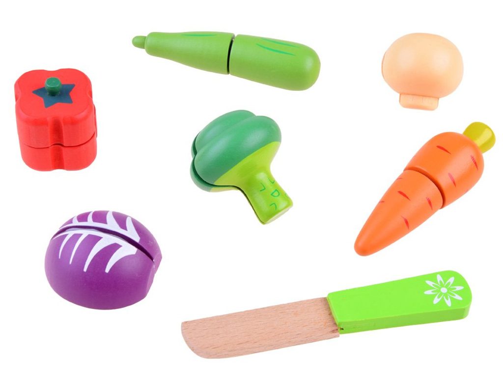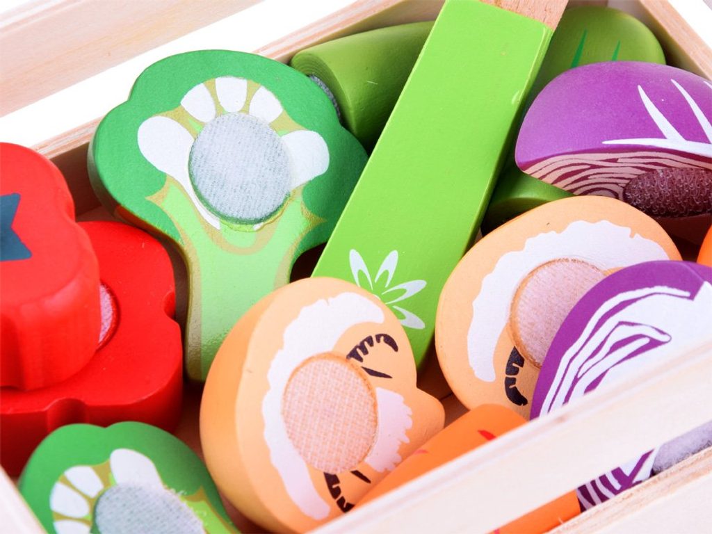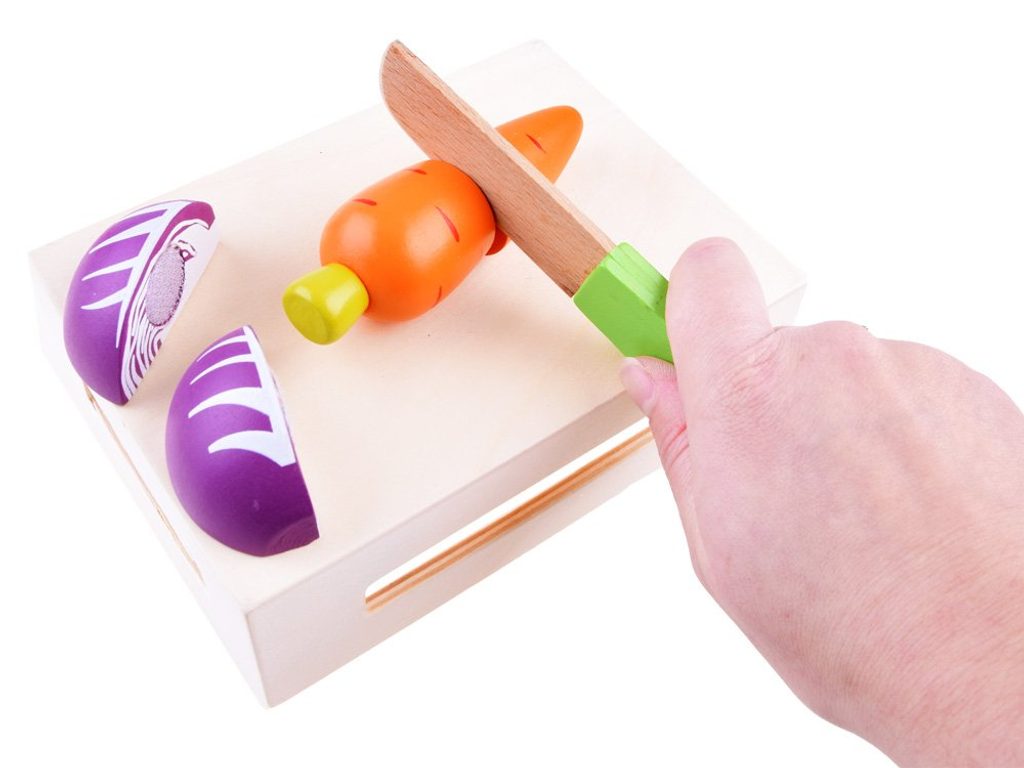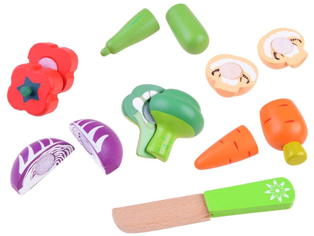 Sada dřevěné zeleniny Vegetable Box se hodí do každé dětské kuchyňky nebo si s ní může dítě hrát samostatně. Zelenina je vyrobena ze dřeva a je pokryta zdravotně nezávadnou barvou. Každou z nich lze rozpůlit a zase zpět spojit pomocí suchého zipu. Sada obsahuje nejznámější druhy zeleniny, dítě se je tak snadno naučí rozpoznávat. Vše je uloženo v praktické dřevěné bedýnce. Součástí balení je také bezpečný nůž. Tato hračka je určena pro děti od 3 let věku.