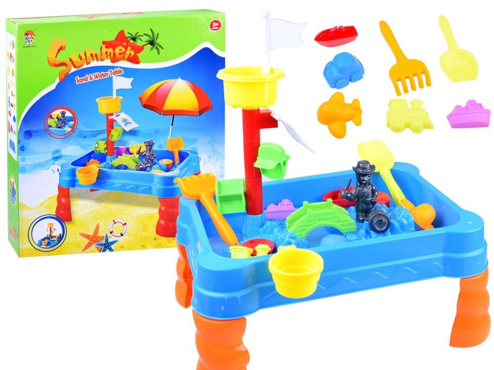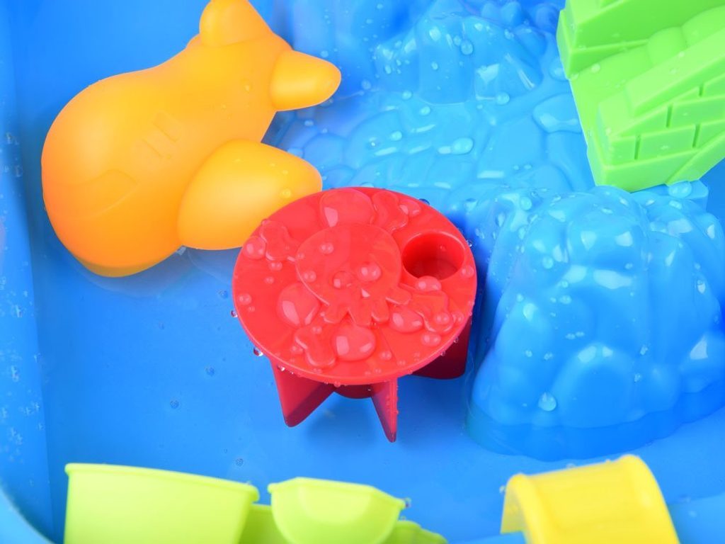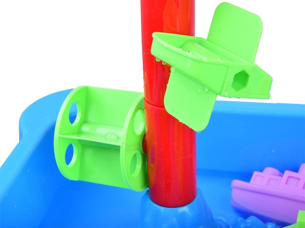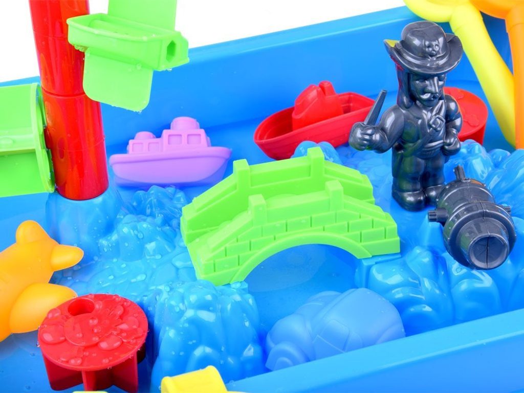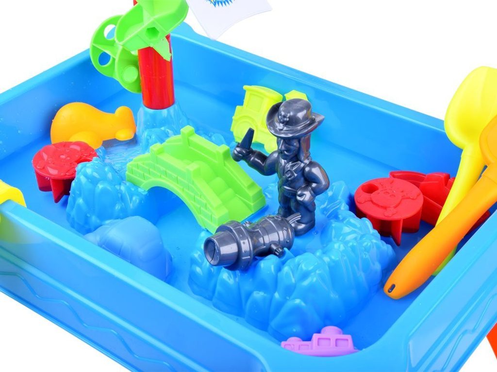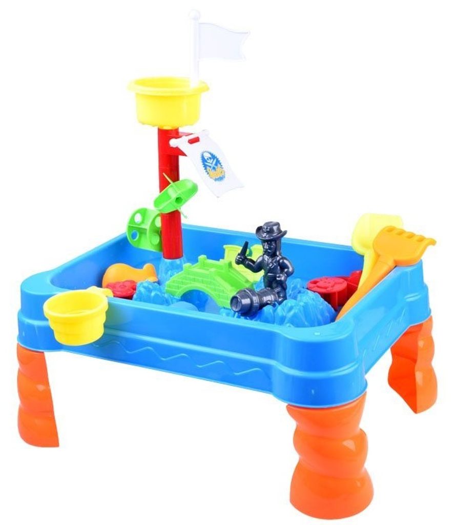 Dětský hrací stoleček s příslušenstvím Malý Pirát je ideální hračkou na zahradu, balkon nebo domů. Součástí sestavy jsou kromě skládacího stolečku se stožárem v provedení pískoviště také hrabičky, lopatička, formičky a postavička piráta s dělem. Na stožáru jsou umístěny 2 pirátské vlajky a vodní mlýnek. Dítě zde tedy najde vše potřebné pro hru s pískem a vodou. Hračka je určena pro děti od 36 měsíců věku.