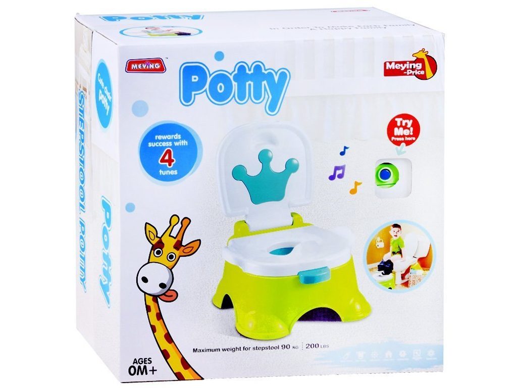 Interaktivní hrající nočník Funny Potty je určen pro ty nejmenší děti. Má celkem 3 způsoby využití, takže přímo roste z Vaším dítětem. Pro výuku používání toalety slouží pro nejmenší děti jako pohodlný nočník. Pro větší děti lze využít prkýnko pro zvětšení otvoru na klasické toaletě. Poslední využití je jako stolička před umyvadlo nebo pod skříňku. Po použití toalety se spouští veselé melodie. Spodní nádoba je vyjímatelná. Nočník je určen pro děti od 6 měsíců věku.