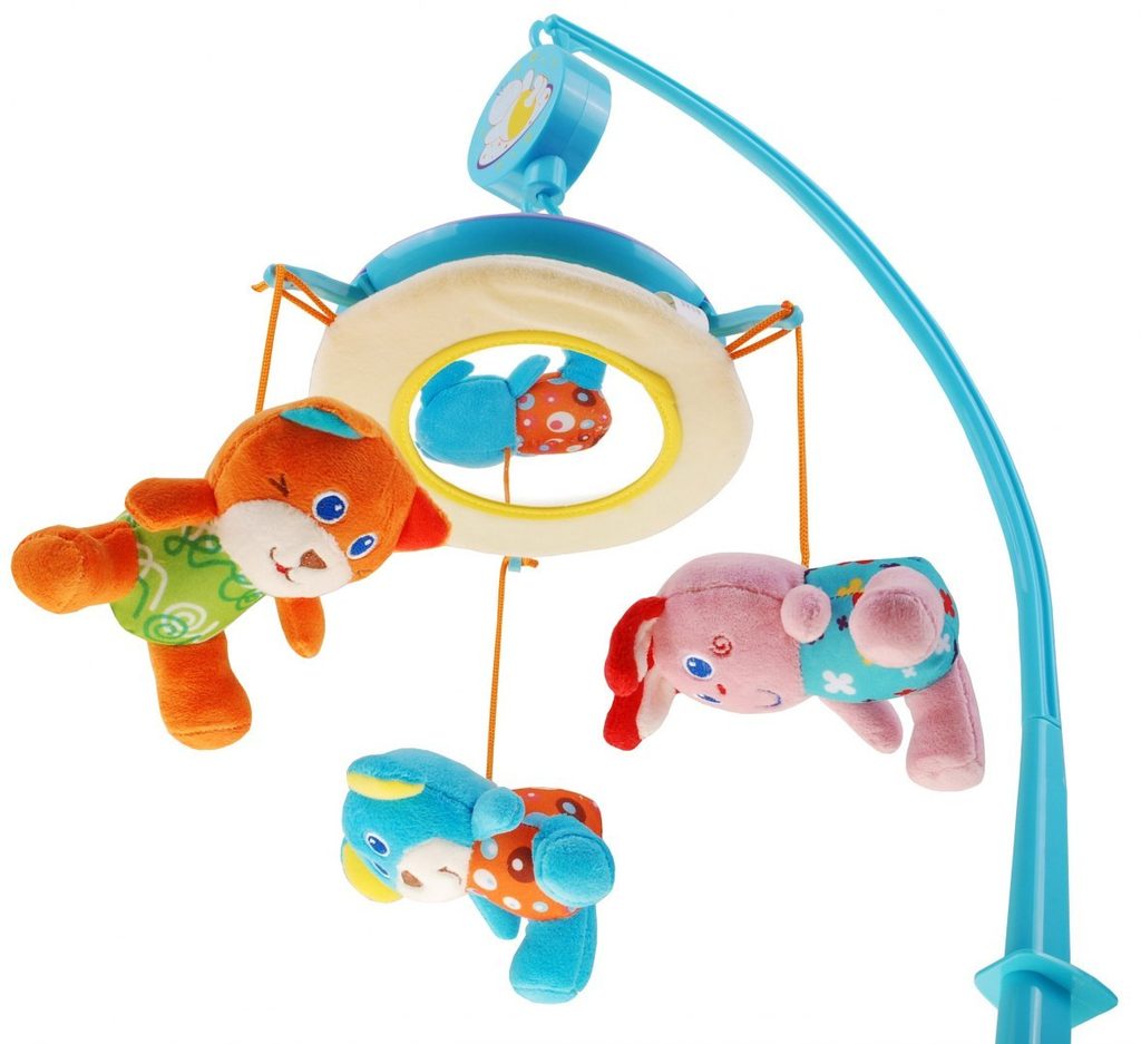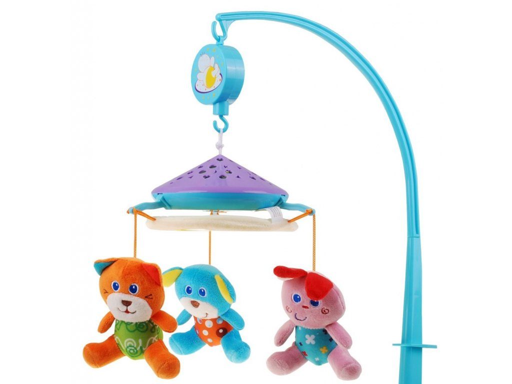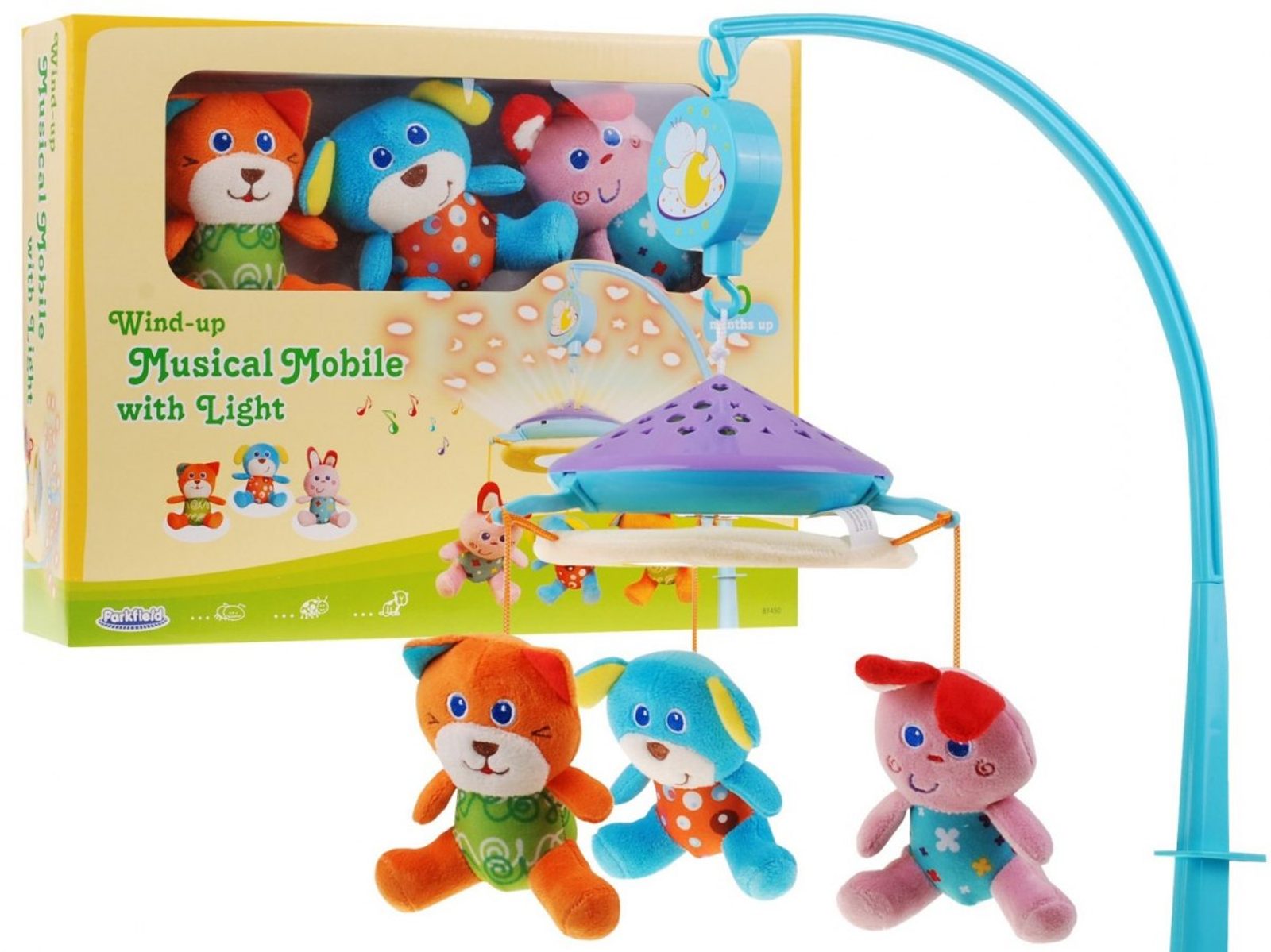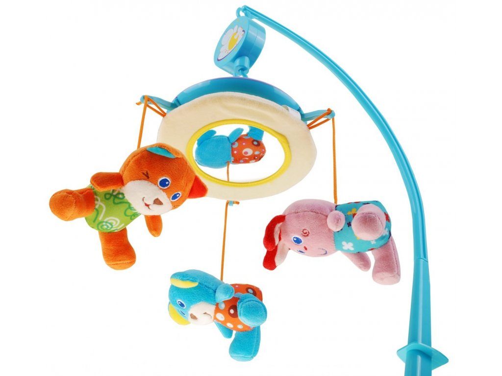 Dětský kolotoč s plyšovými hračkami pomůže každému dítětu hravě usnout. Vybaven uklidňujícími melodiemi a projektorem. Kolotoč lze snadno demontovat, můžete to ho tak umístit i nad kočárek. Součástí kolotoče jsou závěsné plyšové hračky kočička, pejsek a zajíček. Hlasitost melodií lze regulovat.