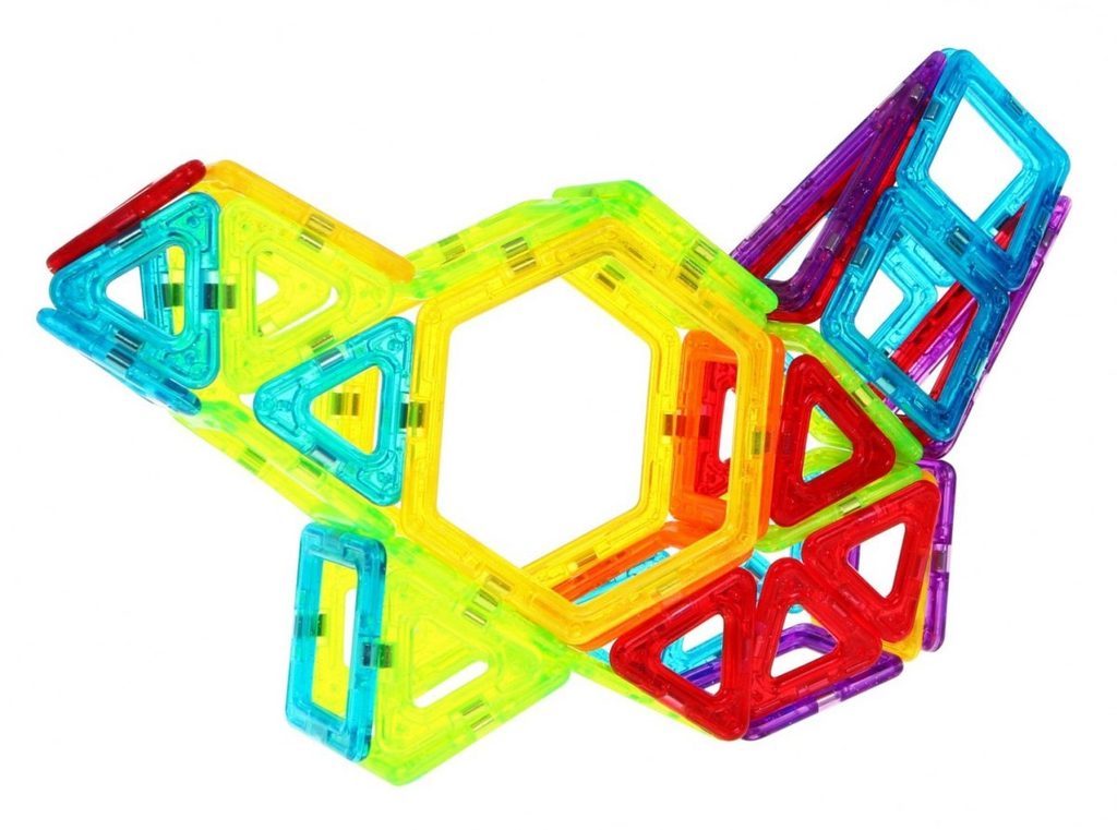 Barevná magnetická stavebnice Mini Magical Magnet je ideální hračkou pro všechny malé konstruktéry. Skládá se z celkem 126 součástí jako jsou čtverce, trojúhelníky, kosočtverce, obdélníky, šestiúhelníky, podvozky s kolečky, samolepky a mnoho dalších komponentů. Všechny součásti se velmi snadno propojují a vytváří z nich různé konstrukce jako jsou stavby, domečky, vozítka, kolotoče a mnoho dalších. Hračka je určena pro děti od 3 let věku.