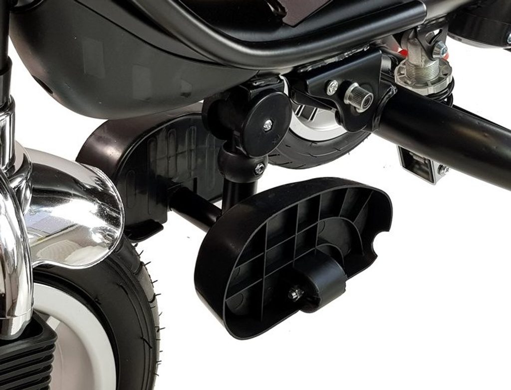 Dětská tříkolka 2v1 PRO500 s nafukovacími koly. Lze ji využít přesně dle potřeba vývoje dítěte dle jeho věku. Primárně určena pro děti od 3 do 5 let, ale využití najde i pro menší děti. Je vybavena praktickou stříškou proti slunci vybavenou UV filtrem. V zadní části je umístěn velký koš na hračky, mezi vodící tyčí potom taška na drobnosti. Tříkolka má pevnou ocelovou konstrukci a robustní nafukovací kola. Pro menší děti slouží stupátka, které lze snadno demontovat. Čalouněné madlo zabraňuje vypadnutí dítěte z kočárku. Na řídítkách je zvoneček. Pomocí vodící tyče mohou tříkolku řídit i rodiče. Tříkolku můžete zcela odstrojit, demontovat stříšku, vodící tyč, ochrannou bariéru a stupátka. Dítě tak může jezdit zcela samo.