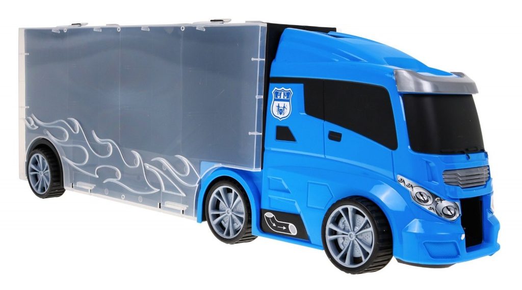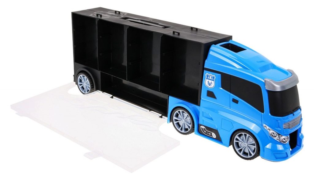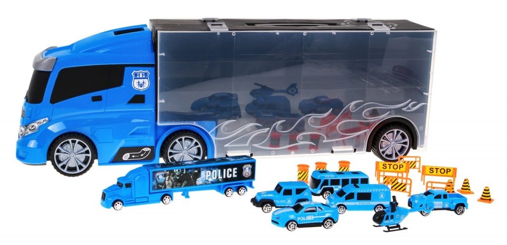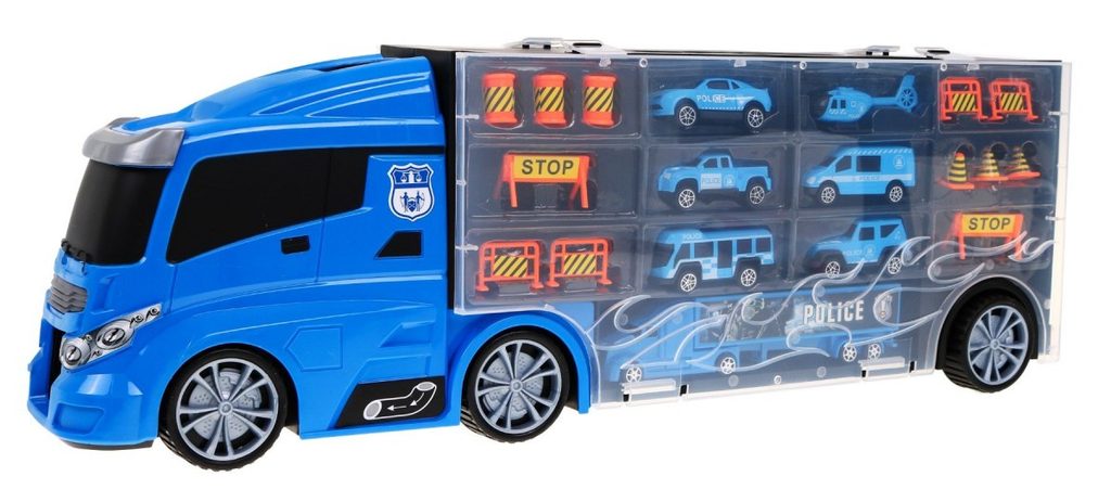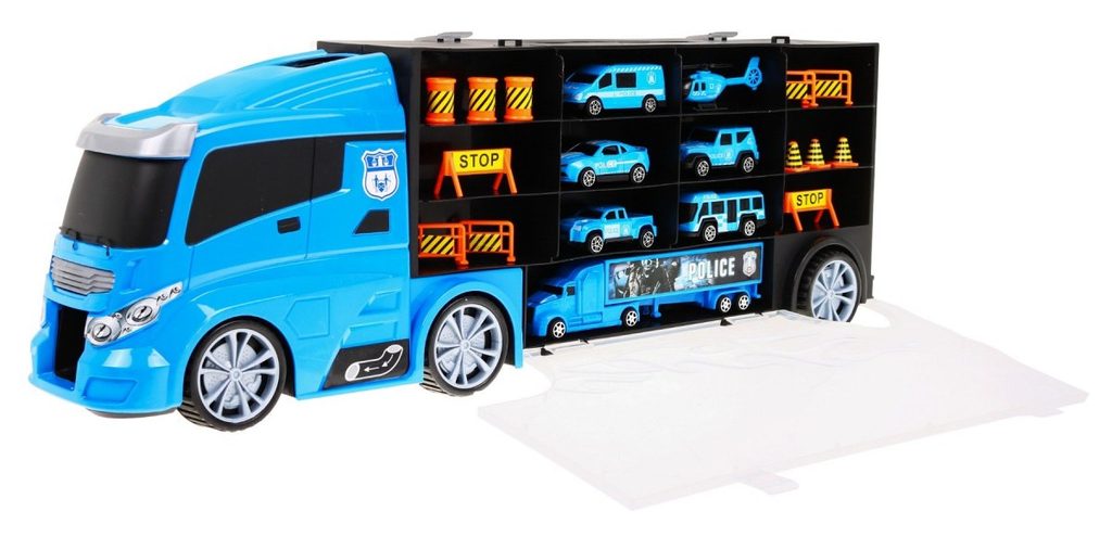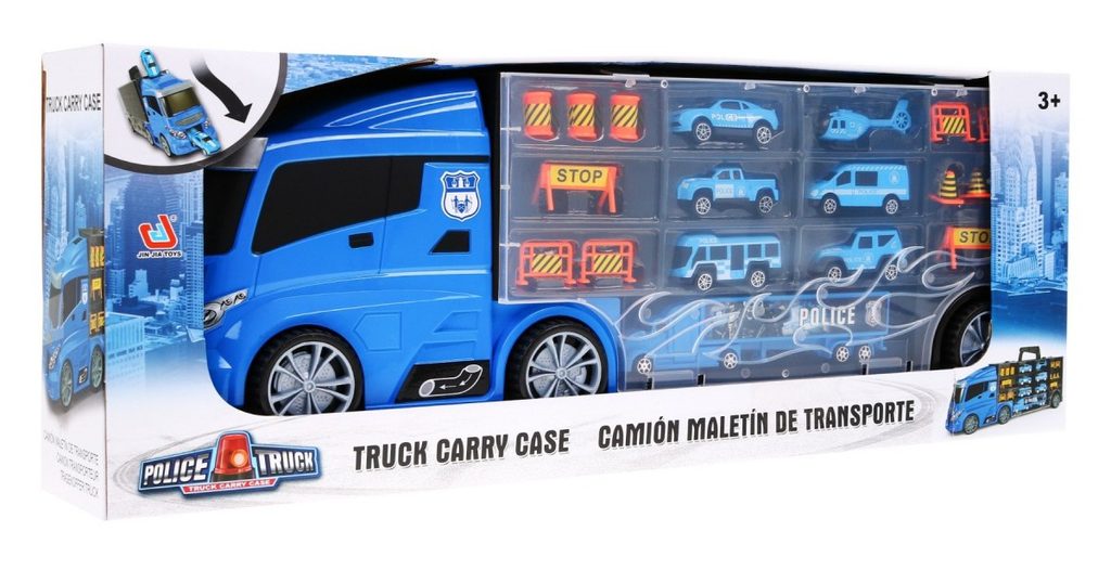 Velké nákladní autíčko Police Truck s přistávací plochou pro vrtulník a skluzavkou. Ta je umístěna na střeše auta a končí v přední části. Součástí auta je 5 policejních autíček, policejní kamion, vrtulník a celkem 12 kusů dalšího příslušenství. Obě boční strany auta jsou otevírací a jsou rozděleny na 12 menších a 5 velkých přihrádek. V horní části je praktický úchyt pro snadné přenášení. Hračka je určena pro děti od 36 měsíců věku.