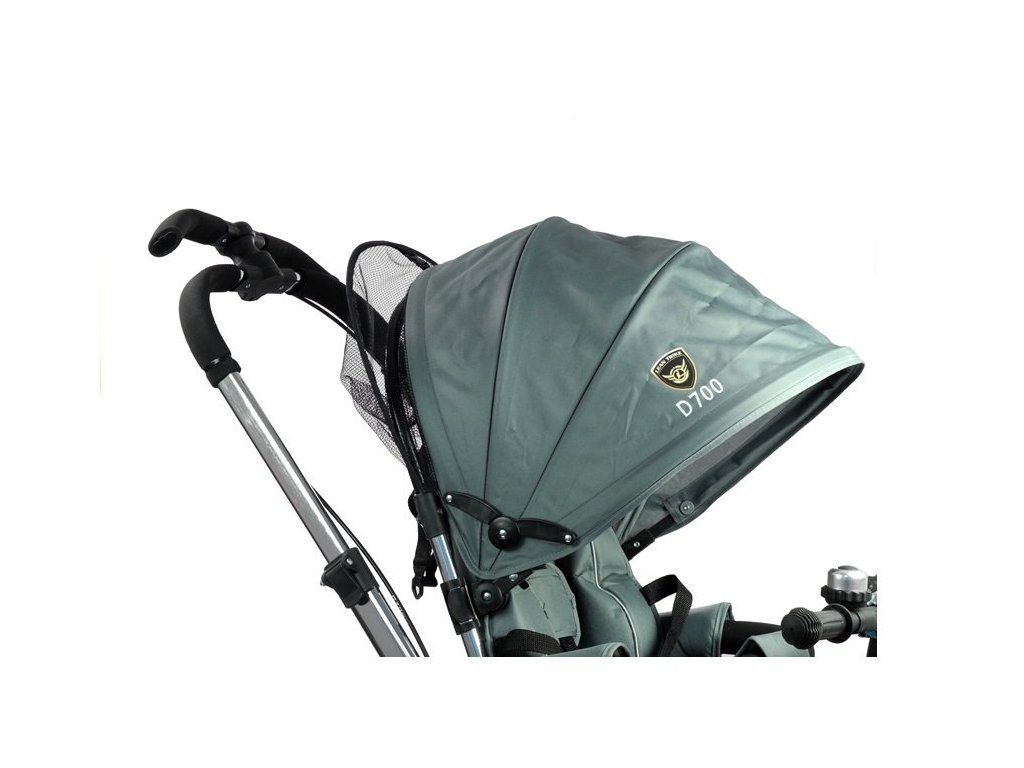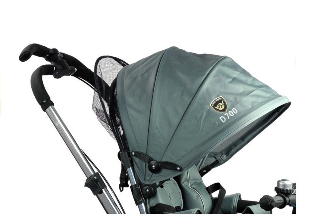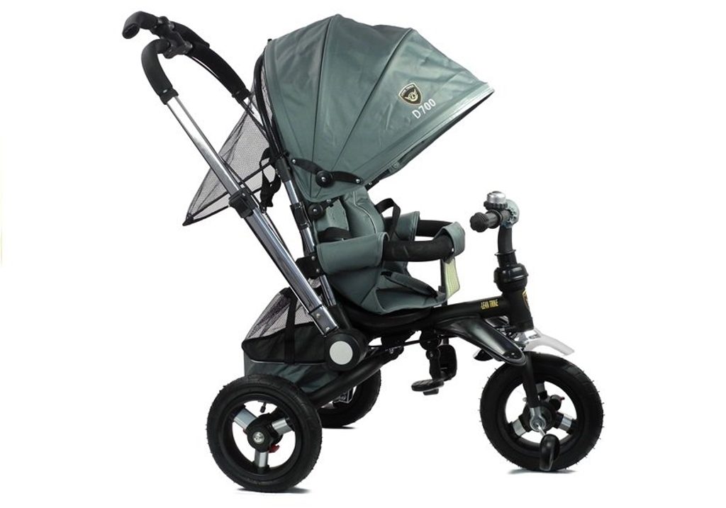 Dětská oboustranná tříkolka Majlo Toys PRO700 s nafukovacími koly. Primárně určena pro děti od 3 do 5 let, ale využití najde i pro menší děti. Vybavena praktickou stříškou proti slunci. V zadní části je umístěn velký koš na hračky, v přední části potom menší košík. Tříkolka má pevnou ocelovou konstrukci a robustní nafukovací kola. Čalouněné madlo zabraňuje vypadnutí dítěte z kočárku. Na řídítkách je zvoneček. Pomocí vodící tyče mohou tříkolku řídit i rodiče a využít ji i jako kočárek podle toho na kterou stranu vodící tyč otočí. Nebo můžete  tříkolku zcela odstrojit. Pro menší děti slouží stupátka. Velkou výhodou je také otočné sedátko.