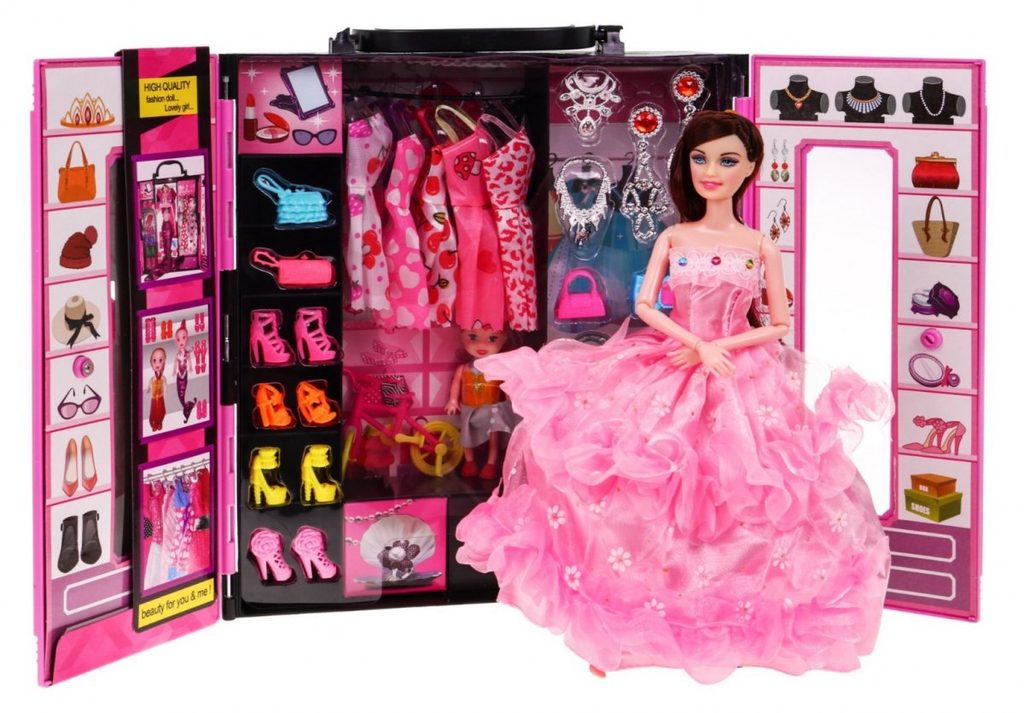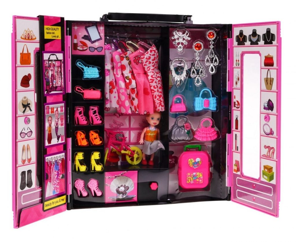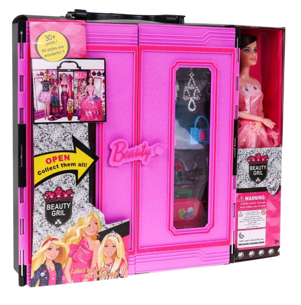 Dětské sestava Beauty Wardrobe obsahuje vše potřebné pro péči o panenku. Základem sestavy je přenosná skříň s horním úchytem pro snadné přenášení a panenka v krásných plesových šatech s výškou 30 cm. V sadě najdete spoustu dalších užitečných věcí jako jsou náhradní šatičky a botičky, cestovní kufr, kabelky, krabička na drobnosti, náhrdelníky a náušnice a také druhou malou panenku. Hračka je určena pro děti od 36 měsíců věku.