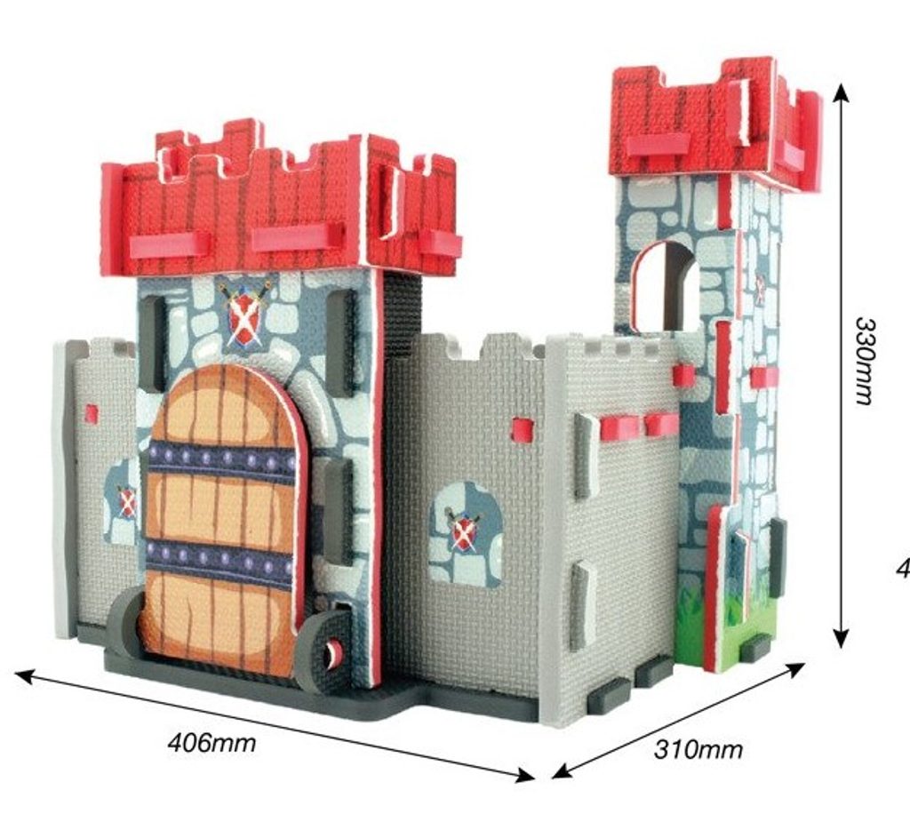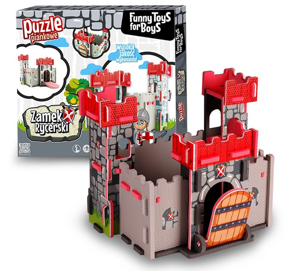 Pěnové skládací puzzle Rytířský zámek přenese Vaše dítě do dávných dob a přemění ho v pravého rytíře. Puzzle je vyrobeno na dotek z příjemného materiálu, skládá se z celkem 35 dílků, kdy každý má výšku 1 cm. Dítě si může postavit kompletní zámek s otevíracími vraty. Hračka je určena pro děti od 36 měsíců věku.