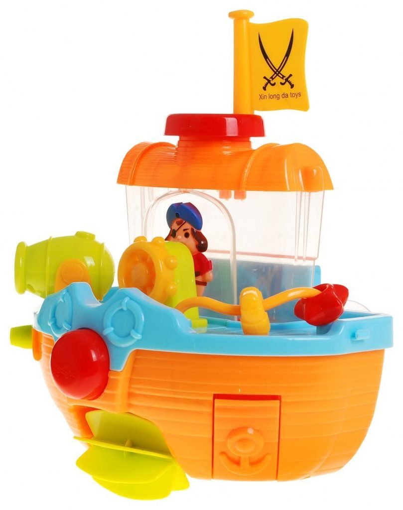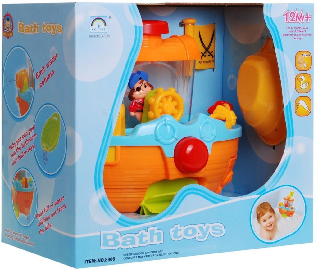 Interaktivní vodní hračka lodička Water Pirate je ideální hračkou pro ty nejmenší děti kdy jim zajímavým způsobem zpříjemní koupání. Umožní dítěti rozvíjet hmat, zrak a vizuální koordinaci. Má spoustu skvělých funkcí jako je otočné kormidlo s pirátem, stříkající kanon který se spouští tlačítkem, malý člun kterým se plní loď vodou, stožár s vlajkou a korálky na palubě. Po naplnění hračky vodou se jednoduše otevře spodní otvor a voda se vypustí. Praktické přísavky umožnují přichytit hračku na okraj vany nebo dlaždice.