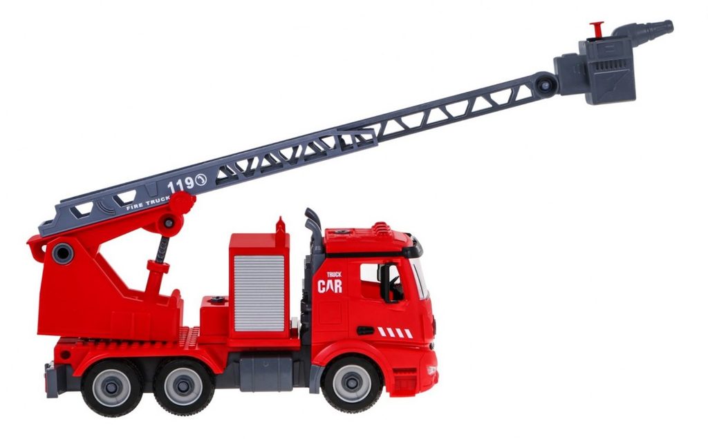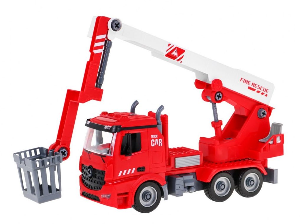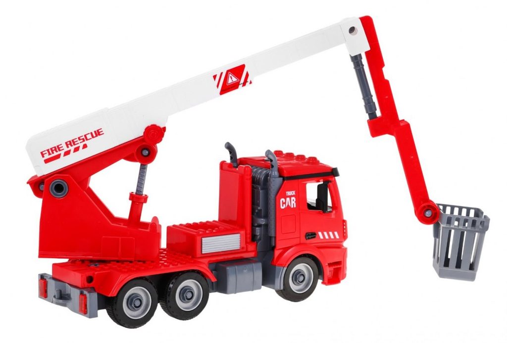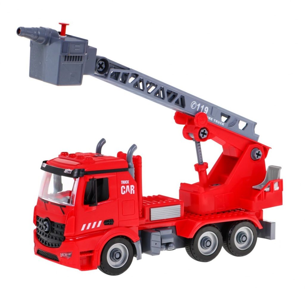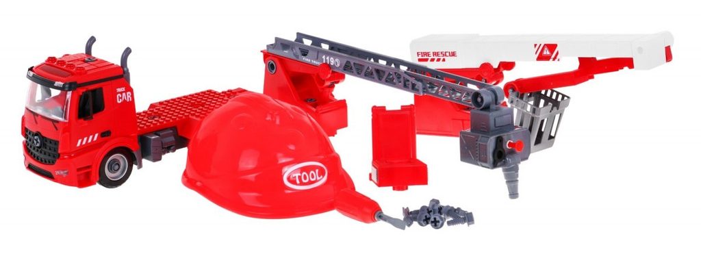 Sestava konstrukčního požárního autíčka Fire Team s helmou je ideální hračkou pro každého malého požárníka. V sestavě najdete všechny potřebné konstrukční prvky pro montáž autíčka včetně šroubů a šroubováku s výměnnými nástavci. Autíčko je vybaveno otočným zvedákem s košem nebo ho lze zaměnit za výsuvný žebřík s funkčním vodním dělem, které po zmáčknutí tlačítka stříká malé množství vody. Při jízdě blikají světýlka a vše je doplněno zvukovými efekty jako je siréna, klakson nebo startující motor. Hračka je určena pro děti od 36 měsíců věku.