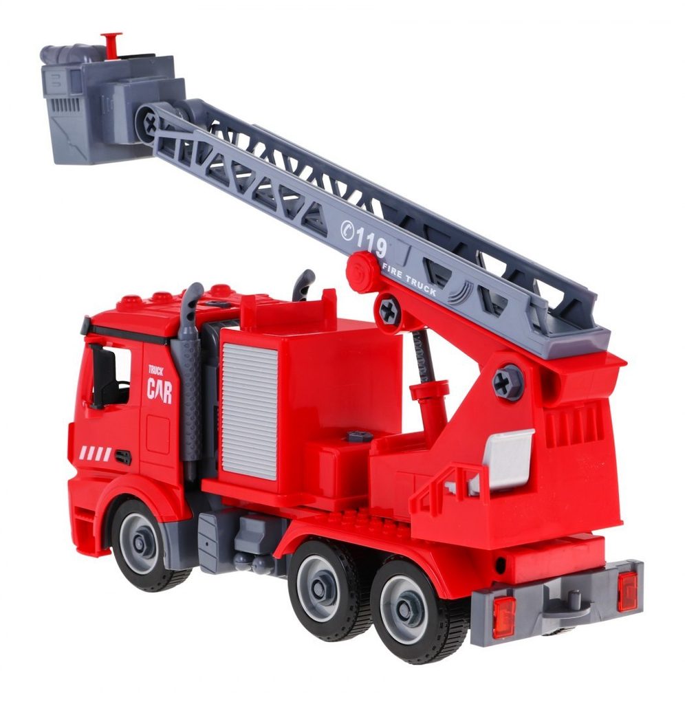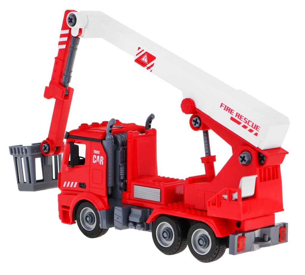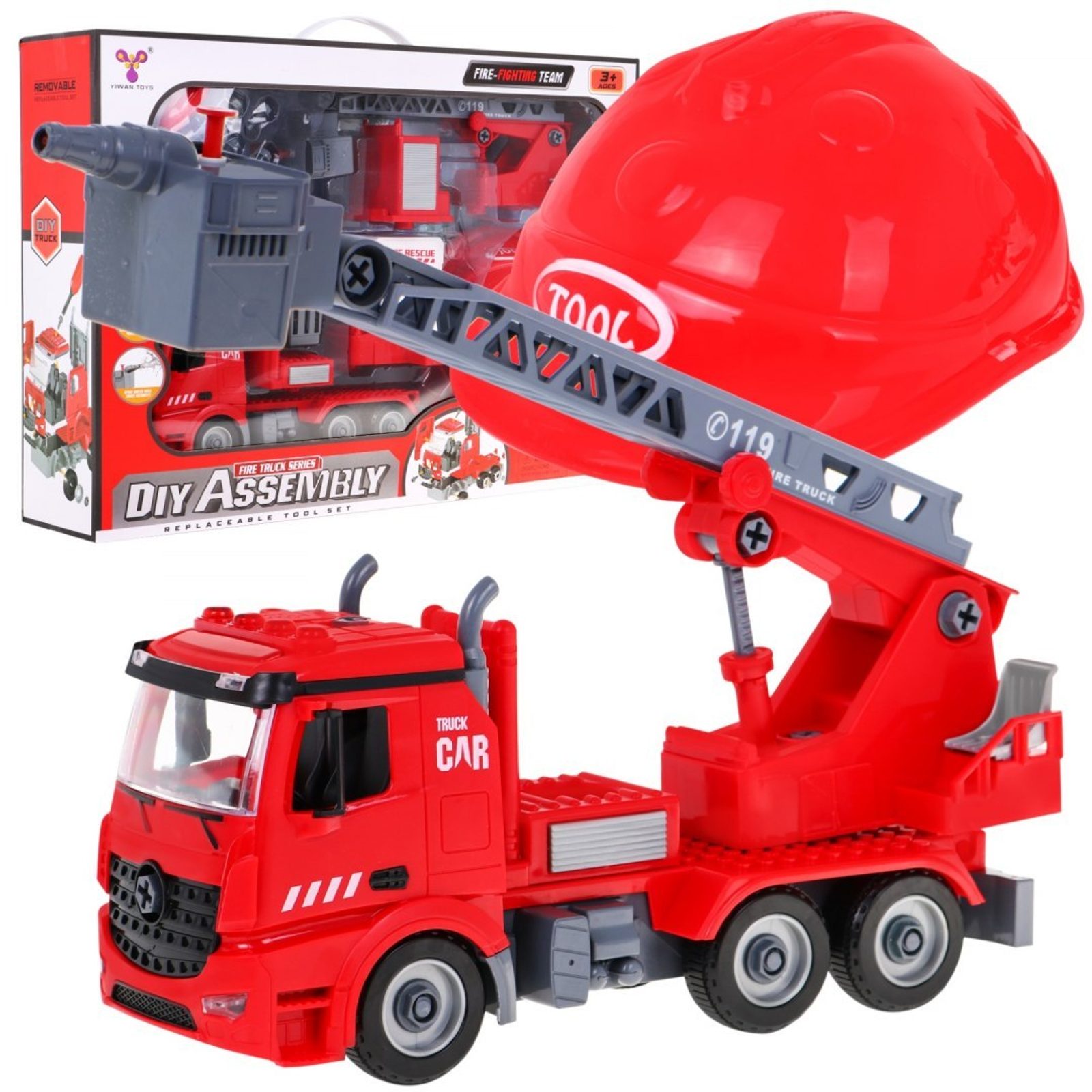 Sestava konstrukčního požárního autíčka Fire Team s helmou je ideální hračkou pro každého malého požárníka. V sestavě najdete všechny potřebné konstrukční prvky pro montáž autíčka včetně šroubů a šroubováku s výměnnými nástavci. Autíčko je vybaveno otočným zvedákem s košem nebo ho lze zaměnit za výsuvný žebřík s funkčním vodním dělem, které po zmáčknutí tlačítka stříká malé množství vody. Při jízdě blikají světýlka a vše je doplněno zvukovými efekty jako je siréna, klakson nebo startující motor. Hračka je určena pro děti od 36 měsíců věku.