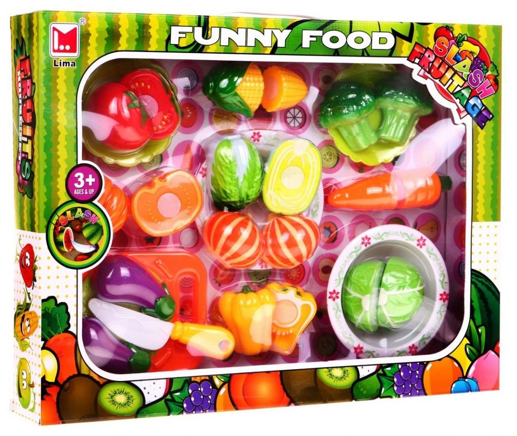 Sada plastové zeleniny Funny Food se hodí do každé dětské kuchyňky nebo si s ní může dítě hrát samostatně. Zeleninu lze rozpůlit a zase zpět spojit pomocí suchého zipu. Sada obsahuje nejznámější druhy zeleniny, dítě se je tak snadno naučí rozpoznávat. Vše je uloženo v praktické kartonové krabici s průhledem, takže se hodí jako ideální dárek. Součástí balení je také prkýnko, bezpečný krájecí nůž, miska a 3 talířky. Tato hračka je určena pro děti od 3 let věku.