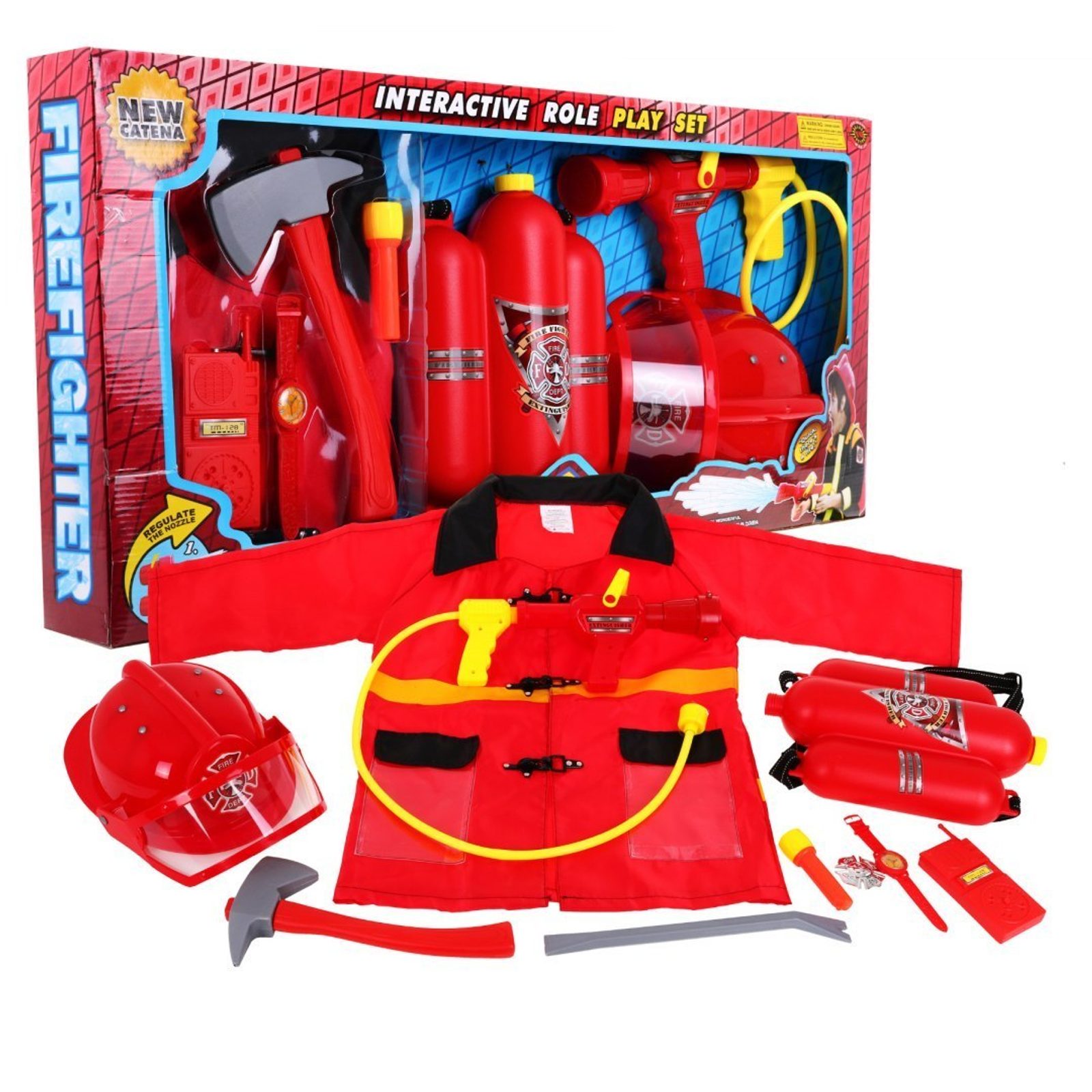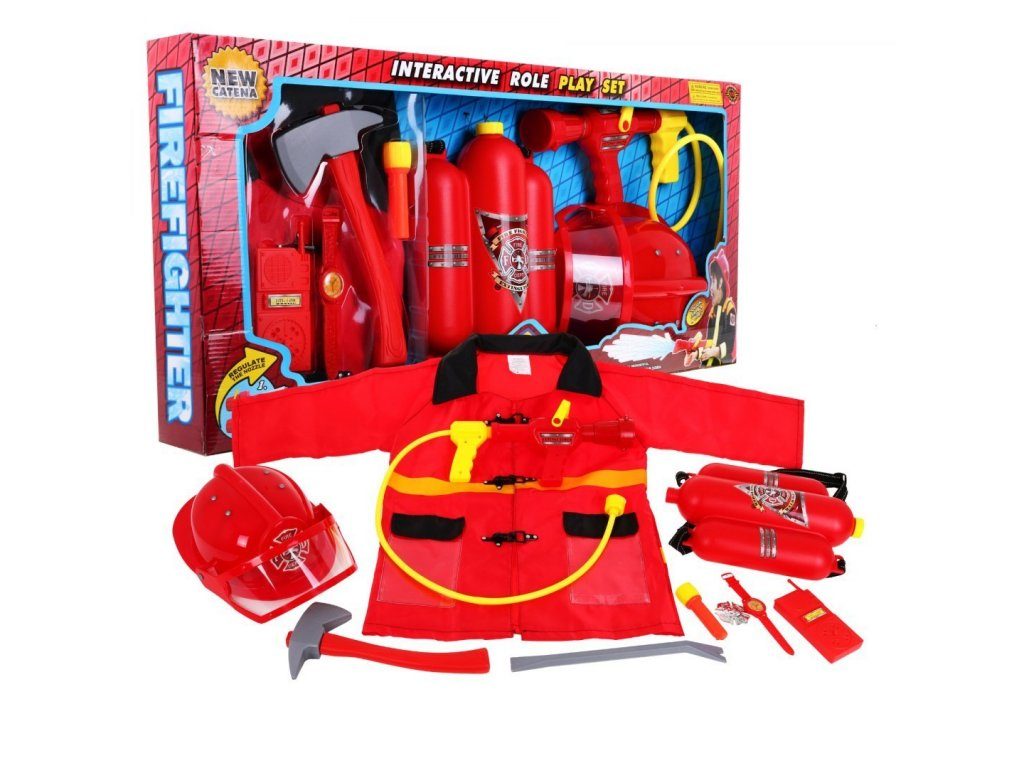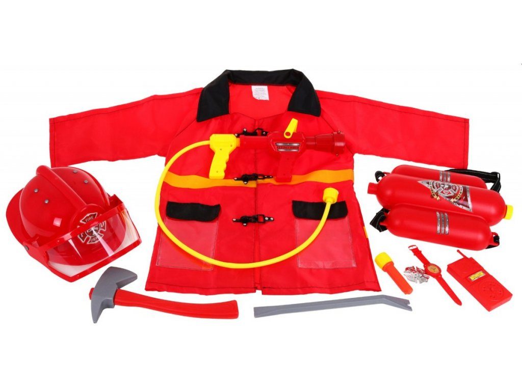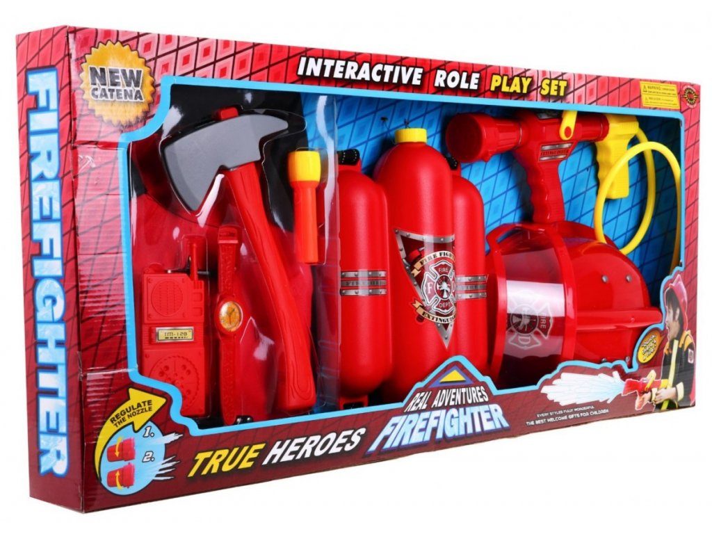 Sestava Malý hasič s helmou a funkčním hasícím přístrojem je ideální hračkou pro každého malého požárníka. Hasící přístroj lze naplnit vodou a pomocí připojené hadice na které lze nastavit množství proudu vody uhasíte vaše dítě jakýkoliv požár. V sestavě je také požární bunda, vysílačka, hodinky, odznak, sekyrka a páčidlo. Hračka je určena pro děti od 36 měsíců věku.