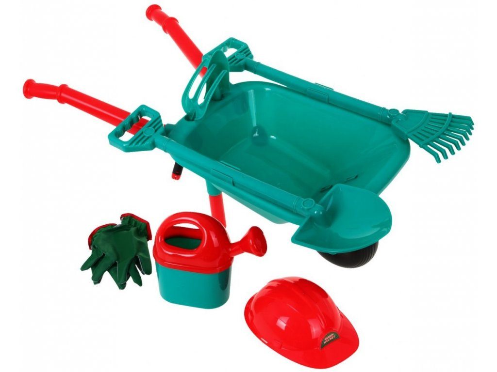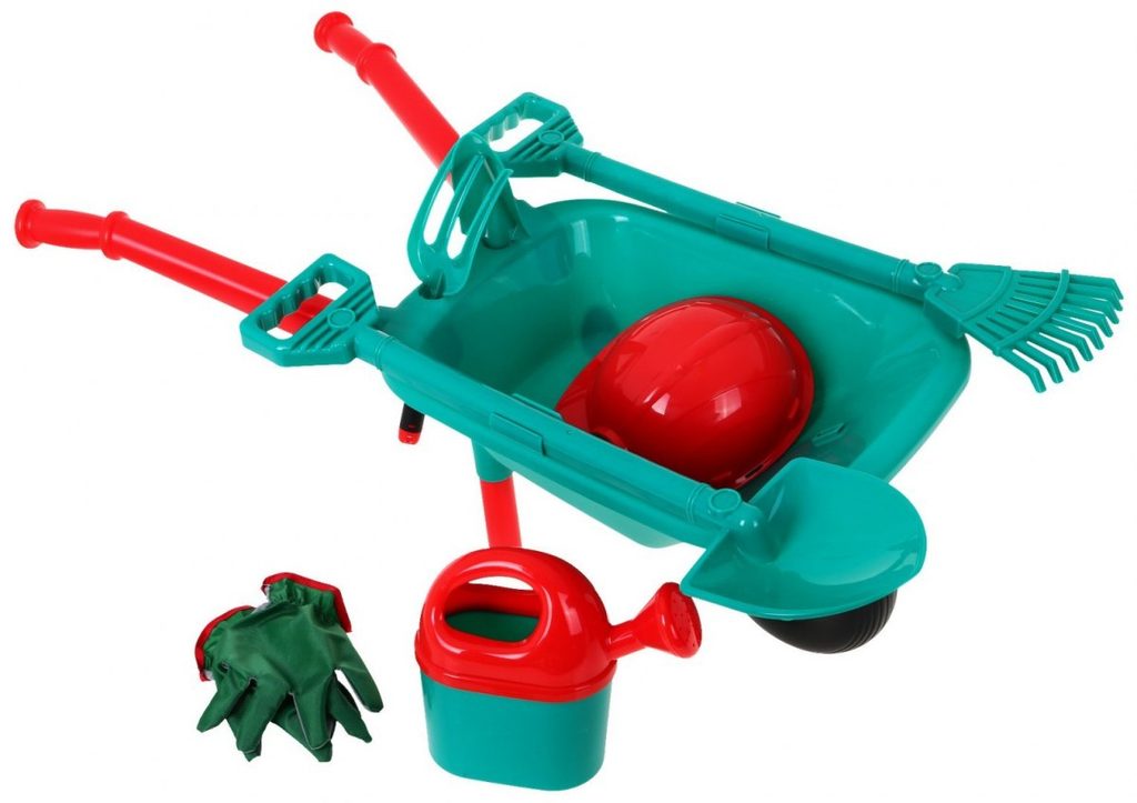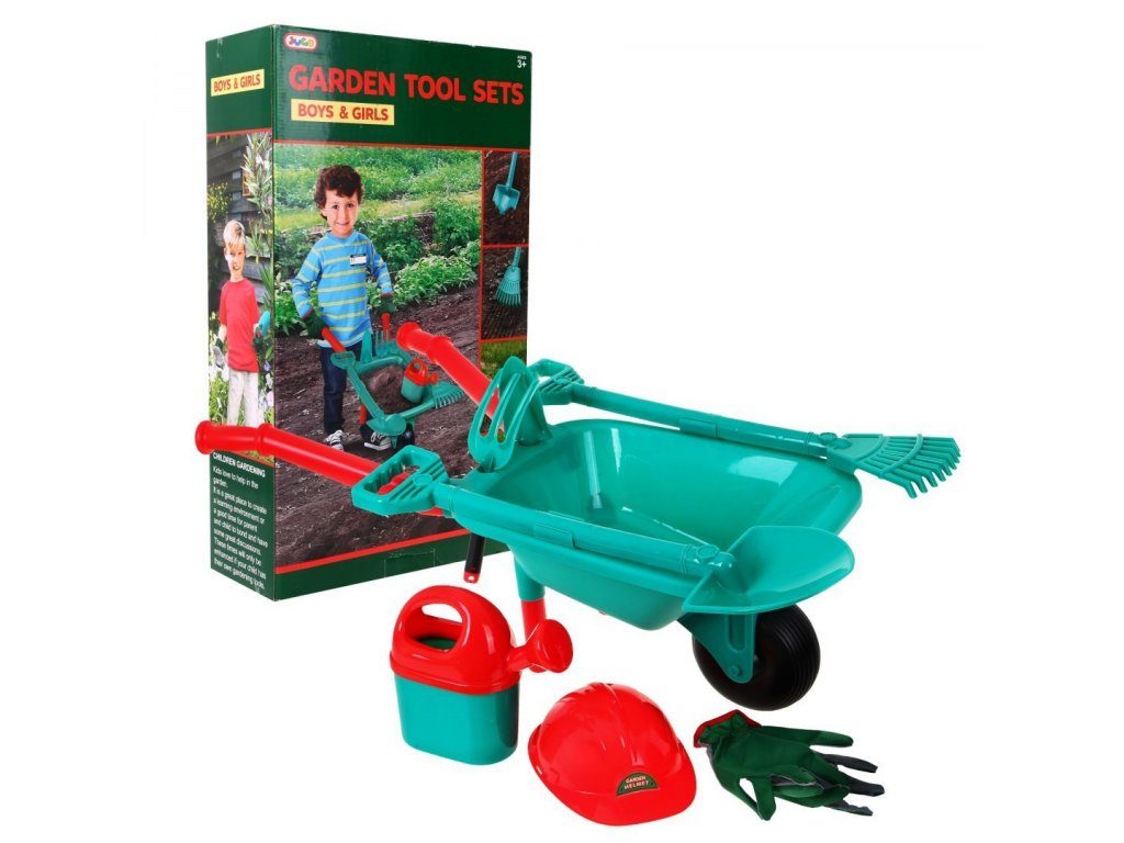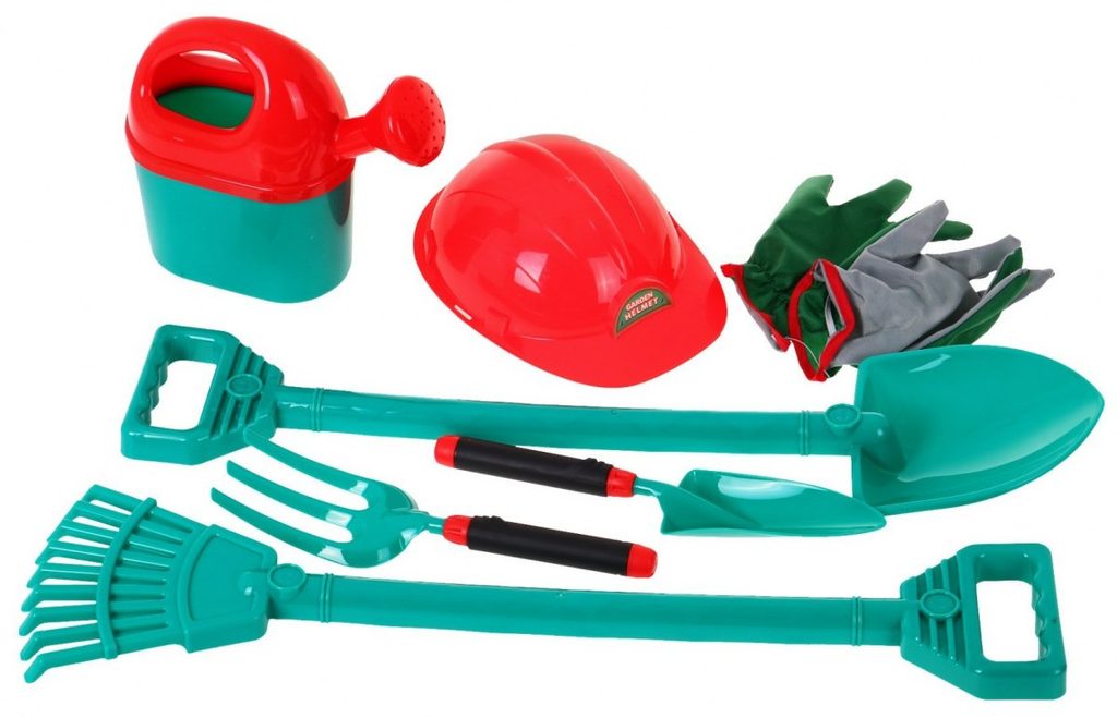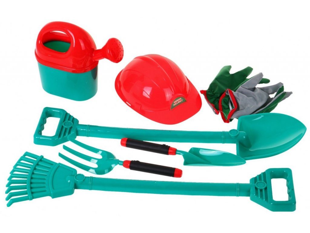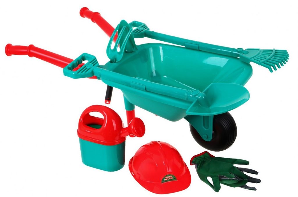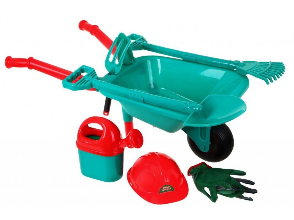Sestava Malý zahradník je ideální hračkou pro každého malého pomocníka na zahradě. Pojízdné kolečka mají otvory pro uchycení malinké lopatky a hrabičky, na horní straně může dítě připevnit pomocí úchytů lopatu a hrábě. Součástí sestavy je také ochranná přilba, rukavice a konev. Dítě zde najde potřebné pro práci a pomoc rodičům na zahradě. Hračka je určena pro děti od 36 měsíců věku.