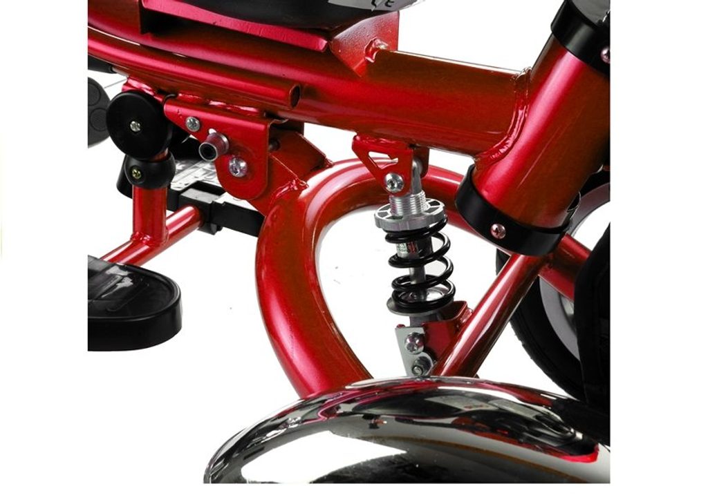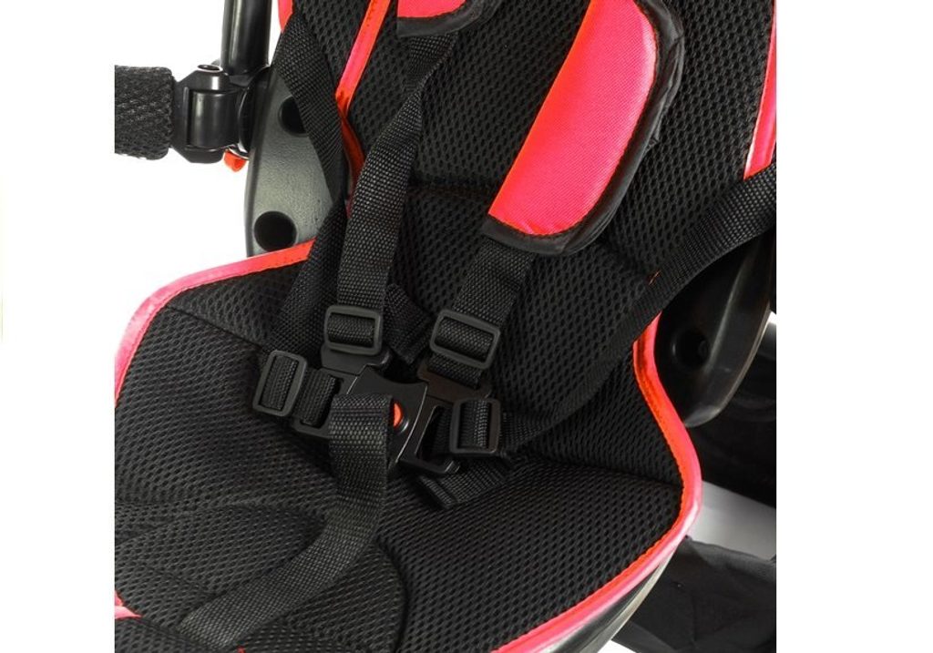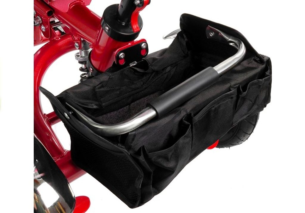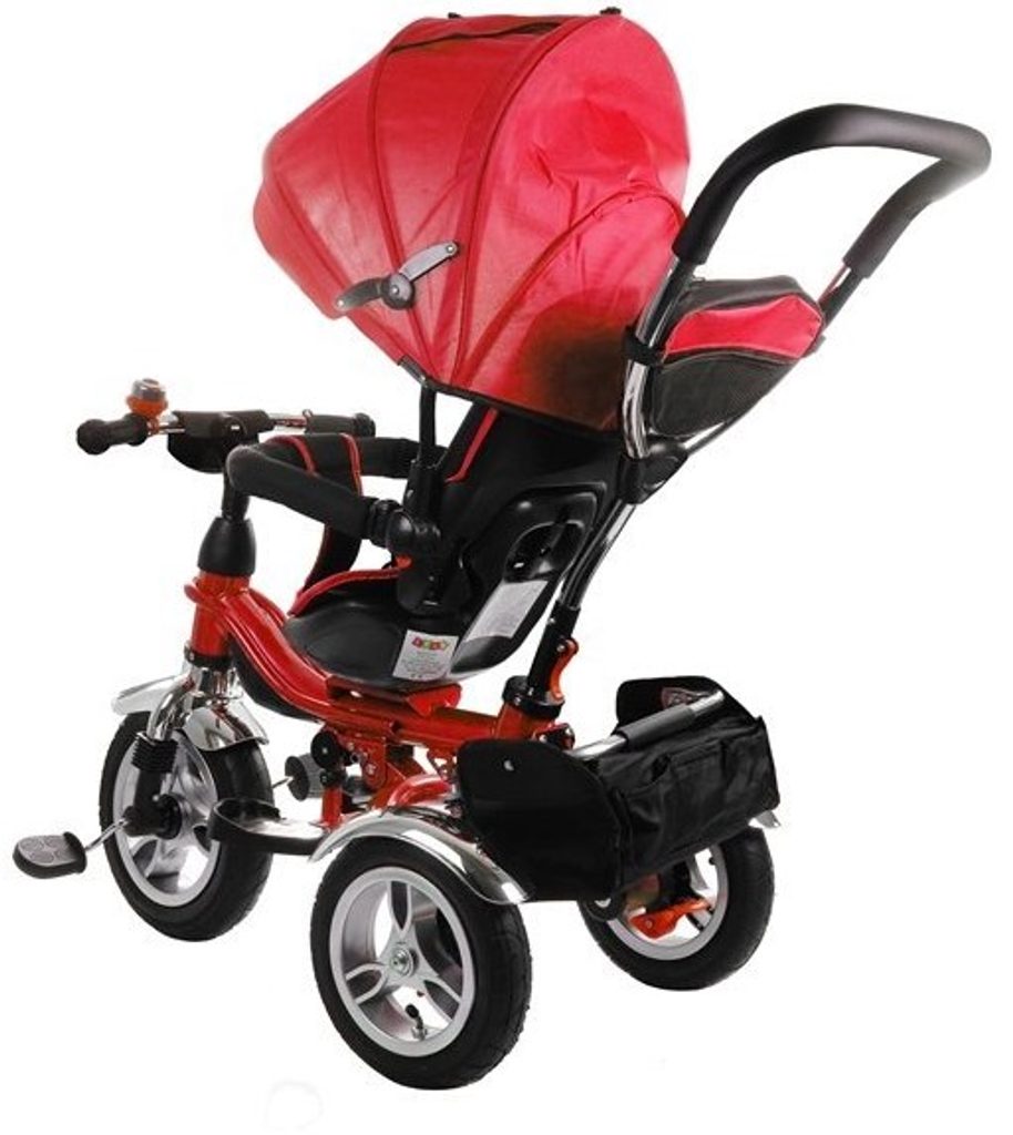 Dětská tříkolka 2v1 PRO600 s nafukovacími koly. Primárně určena pro děti od 3 do 5 let, ale využití najde i pro menší děti. Vybavena praktickou stříškou proti slunci. V zadní části je umístěn velký koš na hračky, mezi vodící tyčí potom taška na drobnosti. Tříkolka má pevnou ocelovou konstrukci a robustní nafukovací kola. Pro menší děti slouží sklopná stupátka. Čalouněné madlo zabraňuje vypadnutí dítěte z kočárku. Na řídítkách je zvoneček. Pomocí vodící tyče mohou tříkolku řídit i rodiče. Tříkolku můžete zcela odstrojit, demontovat stříšku, vodící tyč, ochrannou bariéru a stupátka. Dítě tak může jezdit zcela samo.