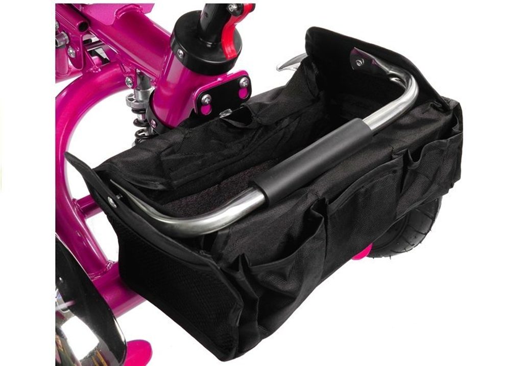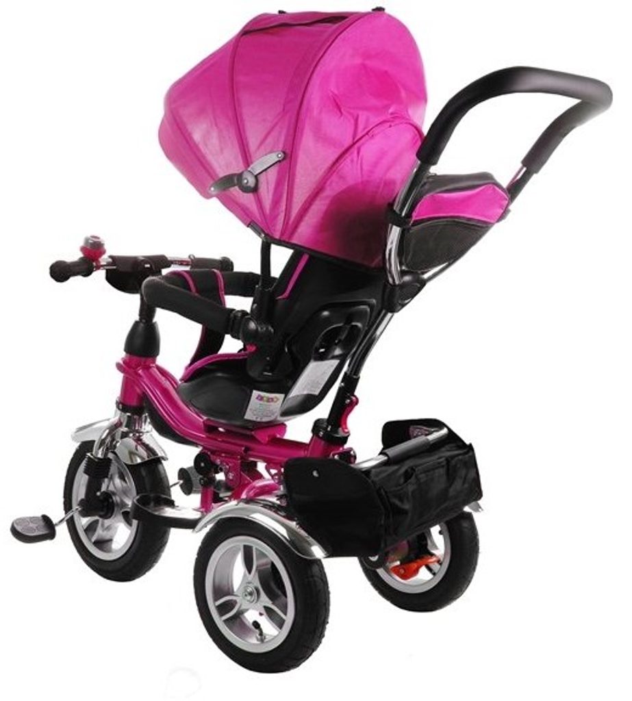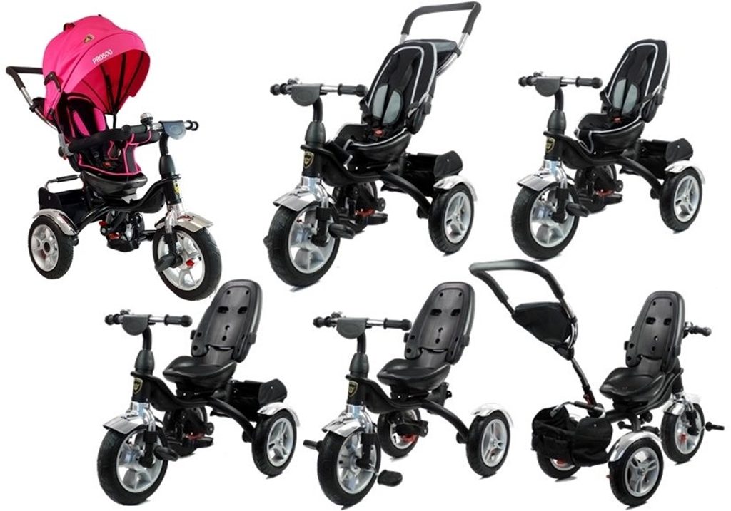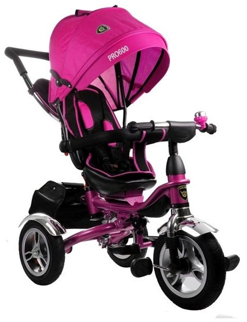 Dětská tříkolka 2v1 PRO600 s nafukovacími koly.  Primárně určena pro děti od 3 do 5 let, ale využití najde i pro menší děti. Vybavena praktickou stříškou proti slunci. V zadní části je umístěn velký koš na hračky, mezi vodící tyčí potom taška na drobnosti. Tříkolka má pevnou ocelovou konstrukci a robustní nafukovací kola. Pro menší děti slouží sklopná stupátka. Čalouněné madlo zabraňuje vypadnutí dítěte z kočárku. Na řídítkách je zvoneček. Pomocí vodící tyče mohou tříkolku řídit i rodiče. Tříkolku můžete zcela odstrojit, demontovat stříšku, vodící tyč, ochrannou bariéru a stupátka. Dítě tak může jezdit zcela samo.
