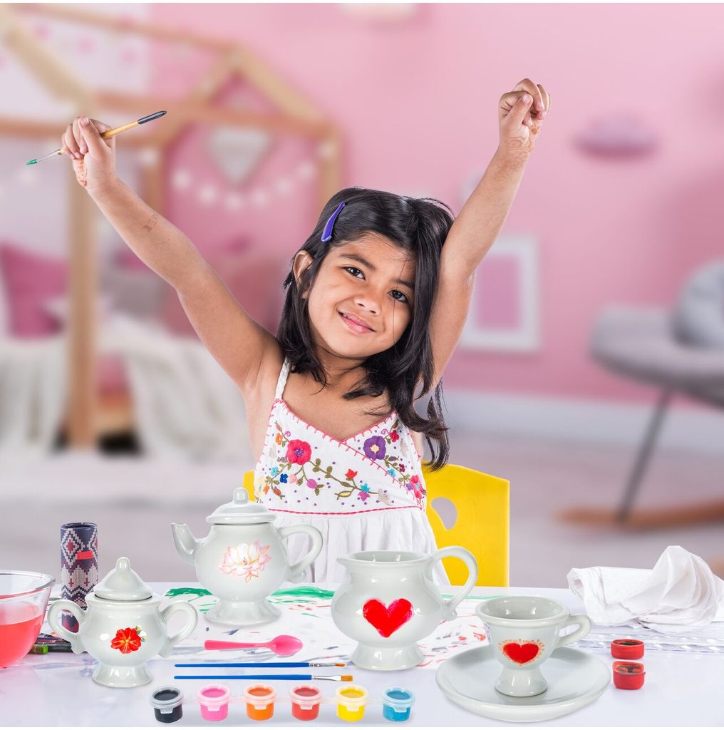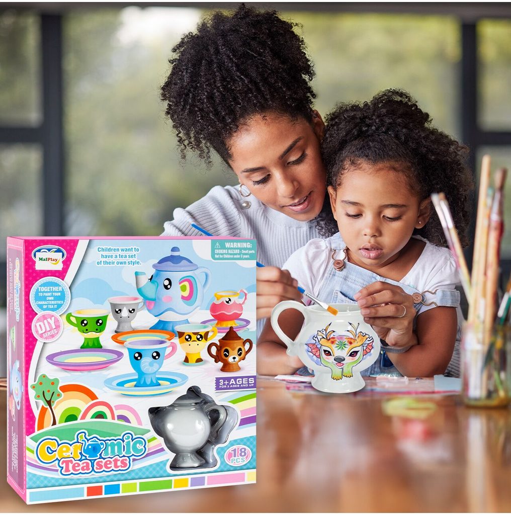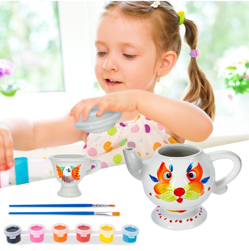 Kreativní sada Ceramic Painting je určena pro každého malého i velkého umělce. Sada obsahuje keramické hrníčky, talířky a konvičku. Ty si budete moci ozdobit podle vlastní představy pomocí přiložených barev, které malé umělce jistě nadchnou. Hotová díla se mohou stát důvodem k hrdosti, skvělou dekorací do dětského pokoje nebo originálním dárkem.