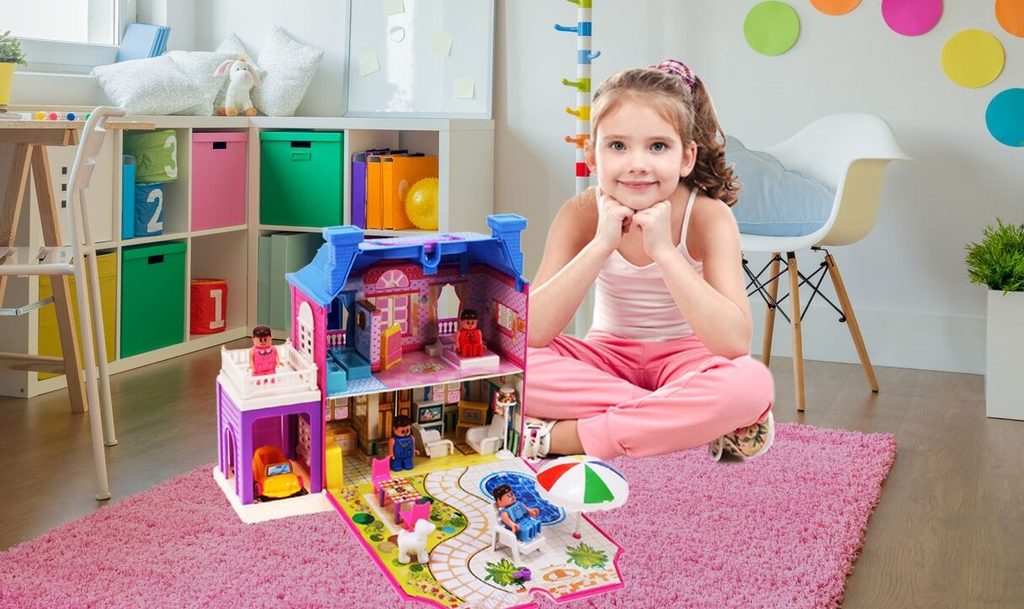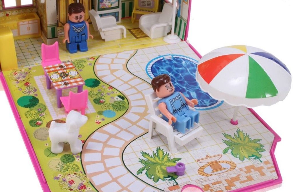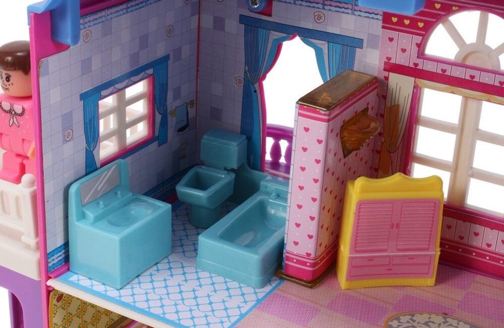 Nádherný plastový domeček pro panenky Dream Palace se 2 patry je snem každé malé princezny. Domeček je vybaven nábytkem který lze libovolně přeskupovat. Naleznete v něm stůl, židle, postel, lednici, skříně a další. Garáž domečku je otevírací a má také vnitřní osvětlení. Pro ještě větší zábavu jsou součástí domečky 4 figurky a pejsek. Ve střeše je umístěn praktický úchyt, domeček lze tedy snadno přenášet. Hračka je určena pro děti od 3 let věku.