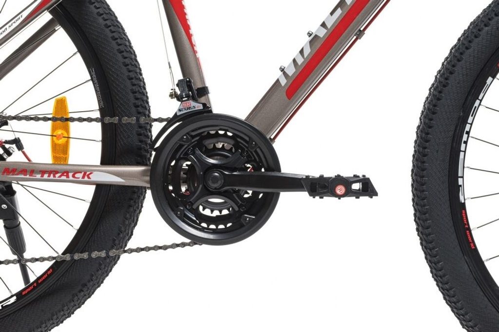 Odpružené dětské kolo MalTrack Sport s 2 přehazovačkami Shimano Tourney TZ a velikostí ráfků 26 palců je určeno pro děti a juniory s výškou od 140 do 180 cm s nosností do 110 kg. Kolo je zaměřeno na nejmladší a díky snadné obsluze a barevnému modernímu designu je každý okamžik strávený na kole skvělým zážitkem. Kolo je vybaveno přední i zadní kotoučovou brzdou s dodatečným antikorozním nátěrem. Přední vidlice je odpružená. Ve výbavě je také stojan a bezpečnostní odrazky. Přední a zadní přehazovačka umožňuje celkem 21 převodů. Silniční a zároveň terénní pneumatiky Poweroad jsou usazeny na ráfcích u kterých máte jistotu, že se nevystředí.