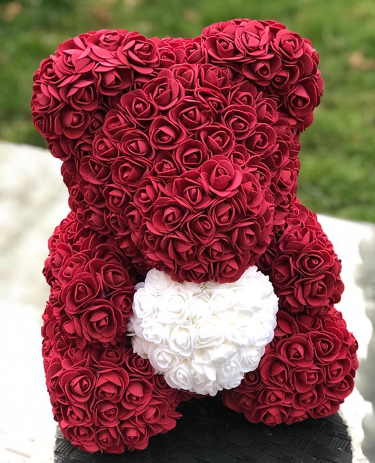 Medvídek z růží bordo s bílým srdcem Rose Bear 40 cm
