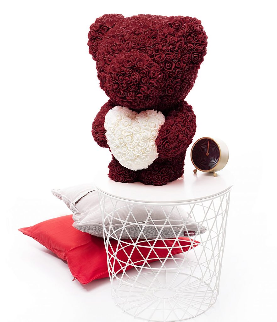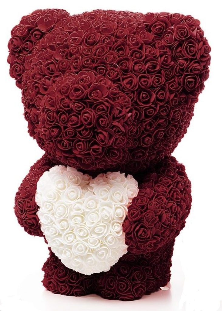 • bordo medvídek z růží s bílým srdcem Rose Bear