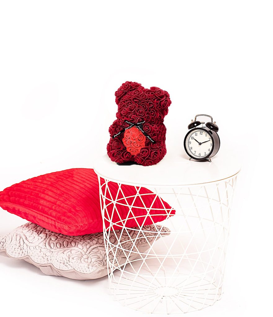 • bordo medvídek z růží s červeným srdcem Rose Bear