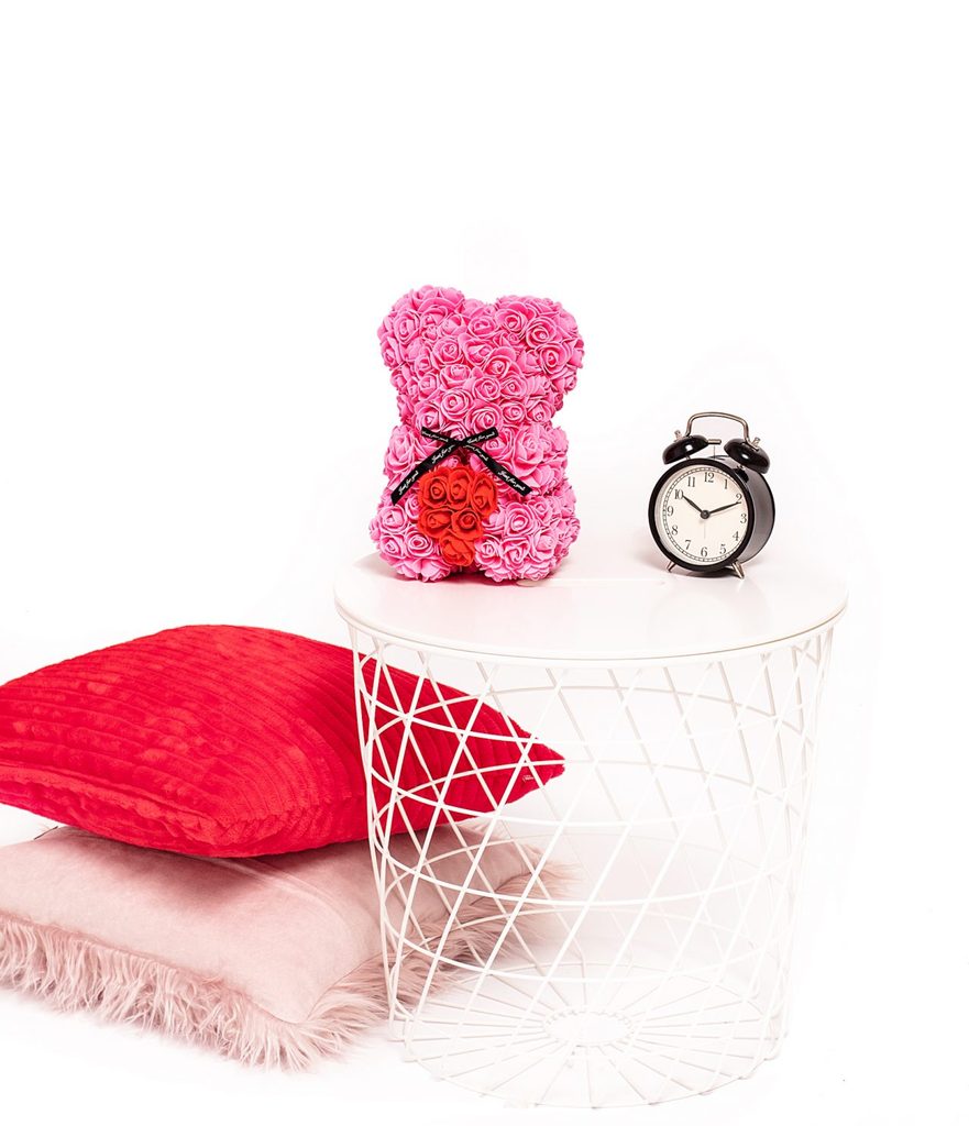 • růžový medvídek z růží s červeným srdíčkem Rose Bear