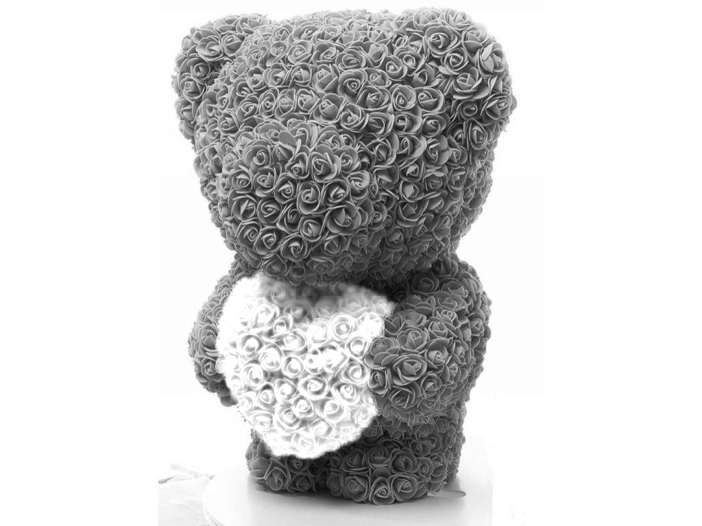 Medvídek z růží šedý s bílým srdcem Rose Bear 60 cm