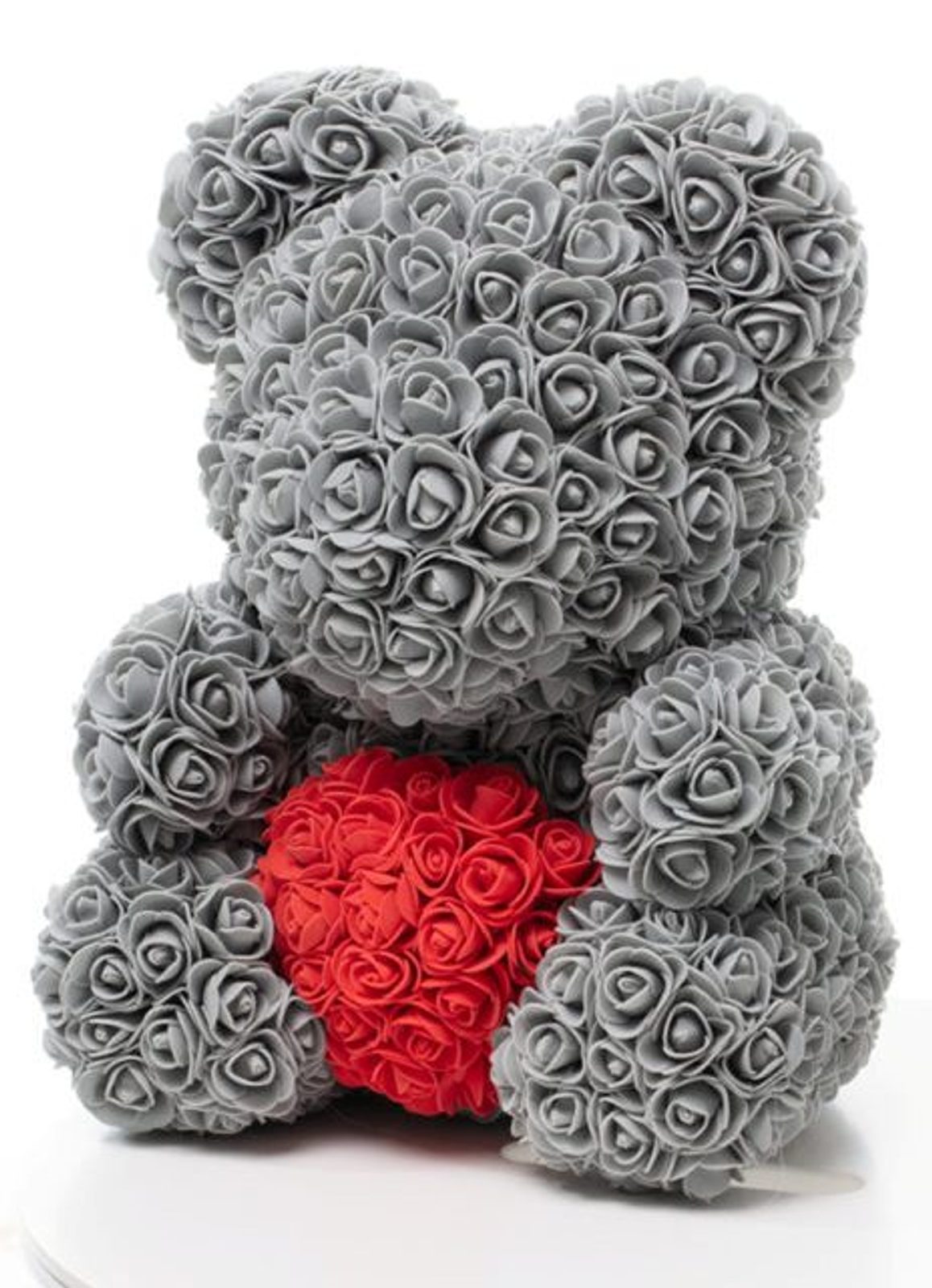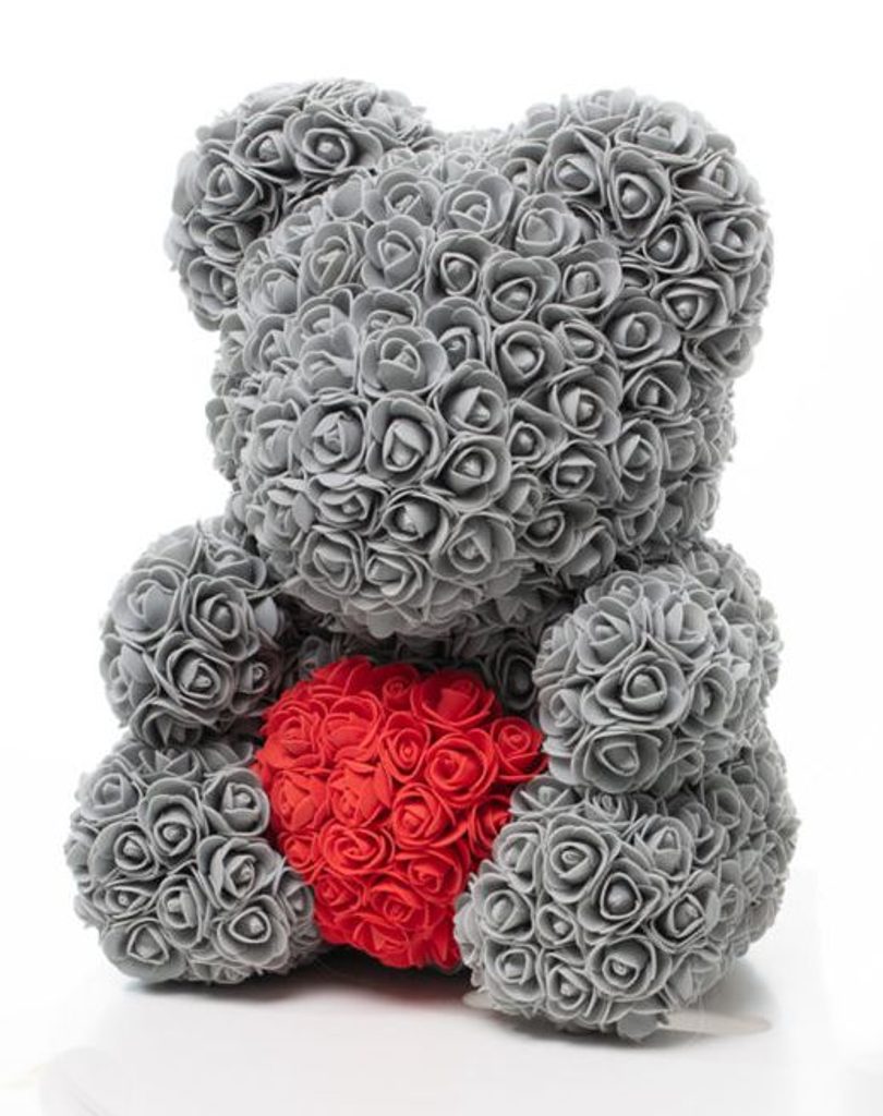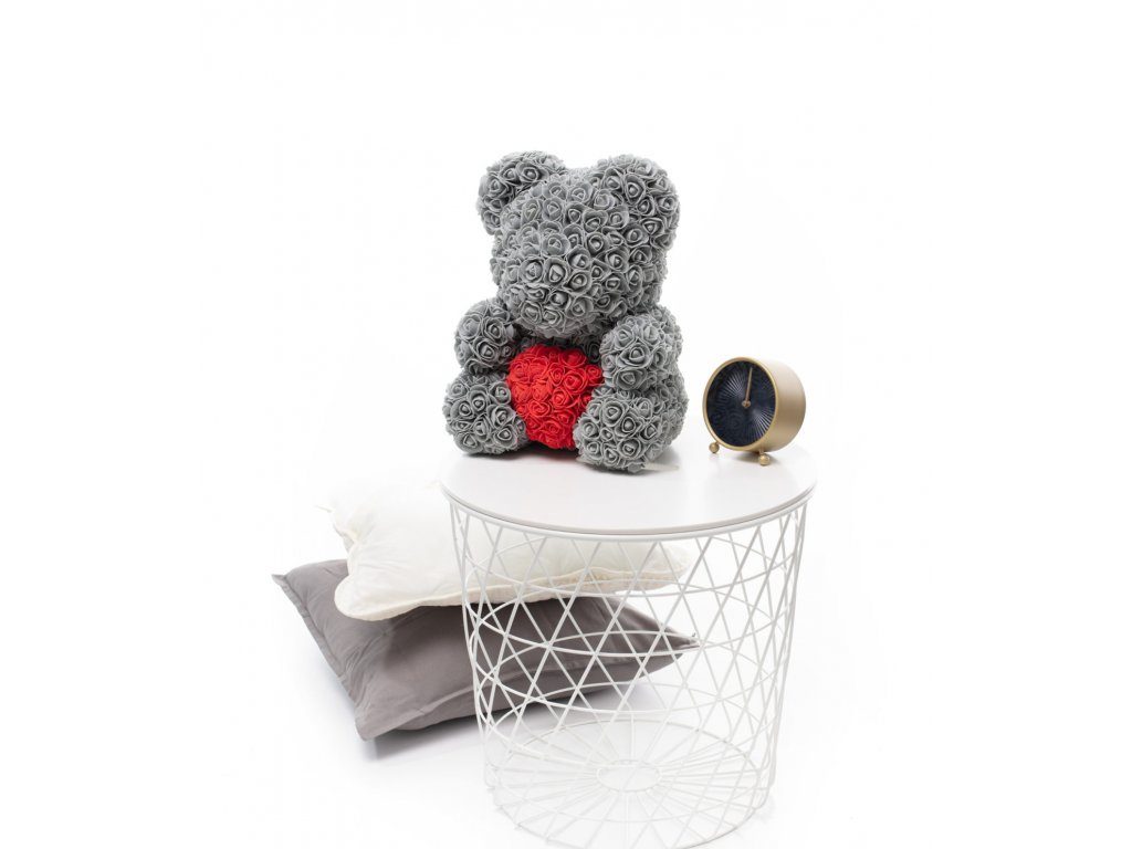 Medvídek z růží šedý s červeným srdcem Rose Bear 40 cm