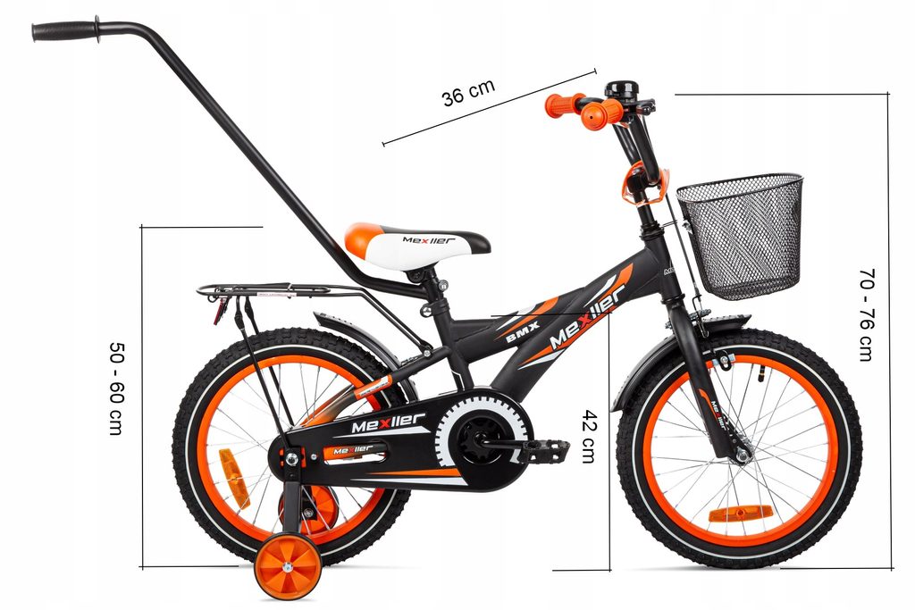 Mexller dětské kolo BMX 16" s vodící tyčí černooranžové