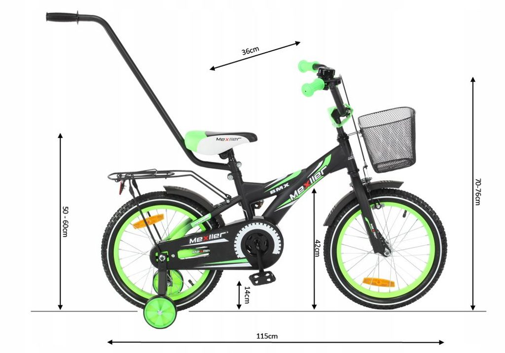 Mexller dětské kolo BMX 16" s vodící tyčí černozelené