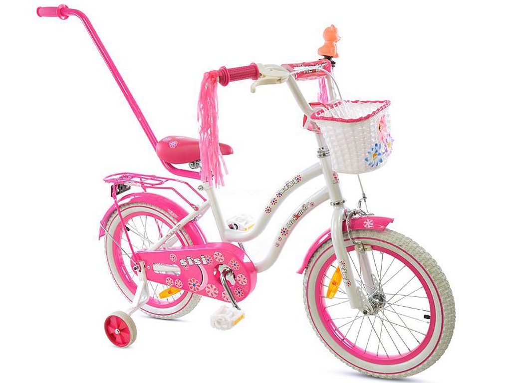 Mexller dětské kolo SISI 16" s vodící tyčí bílorůžové