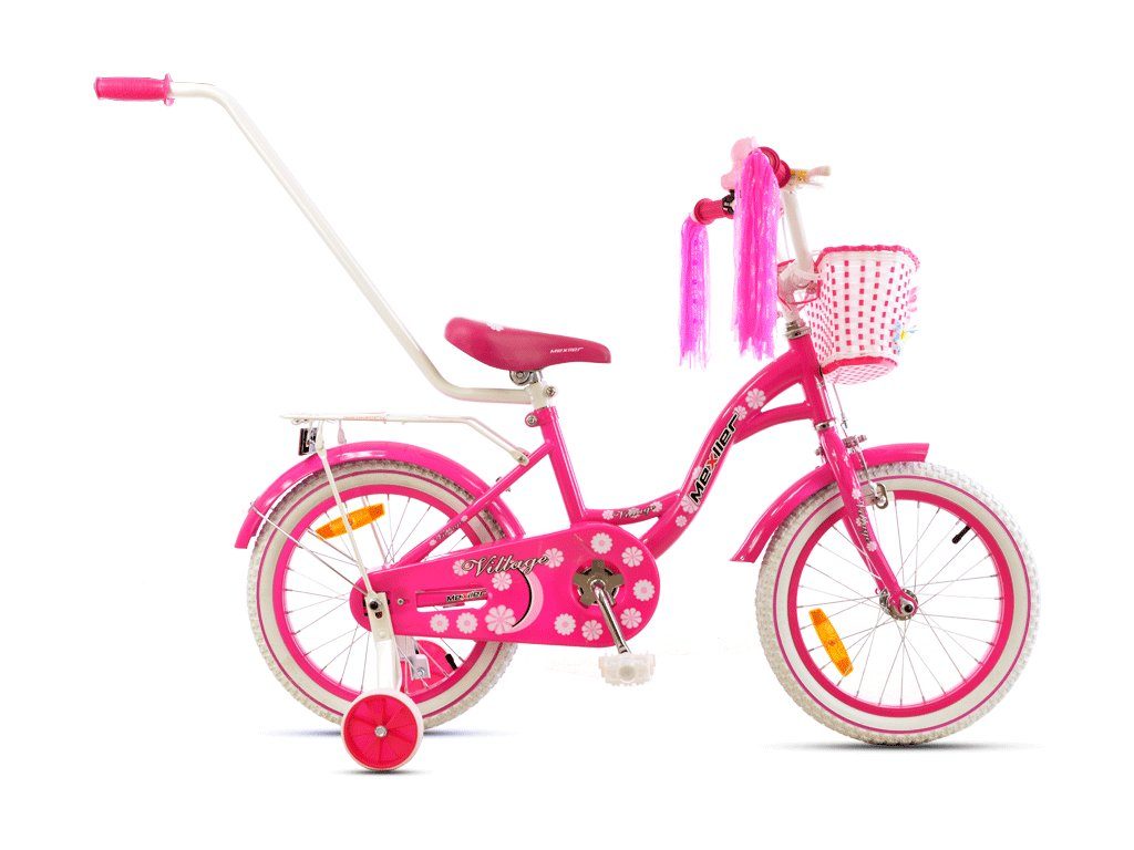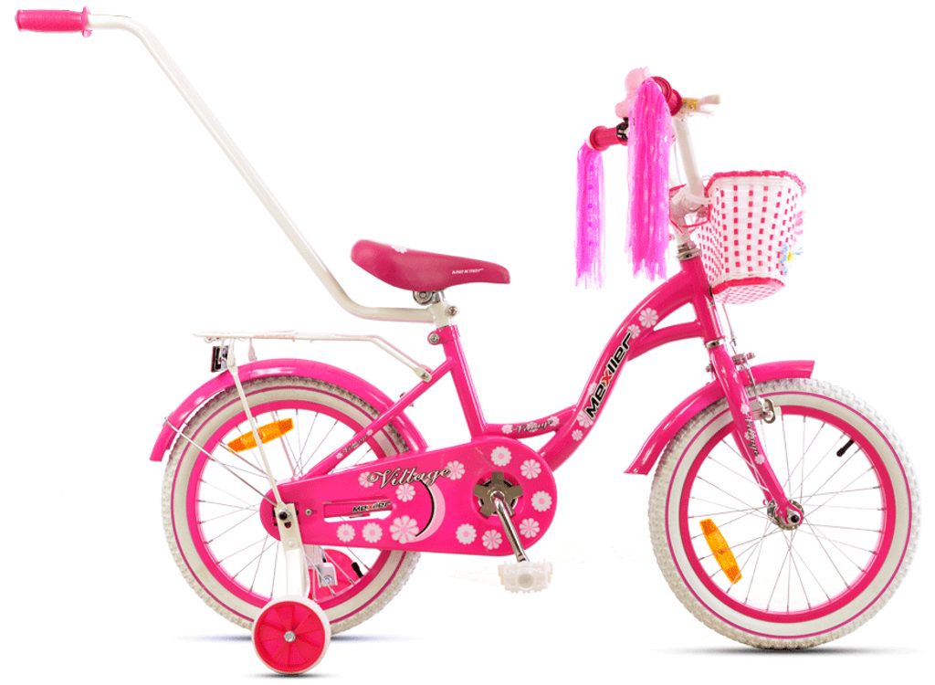 Mexller dětské kolo Village 16" s vodící tyčí růžové