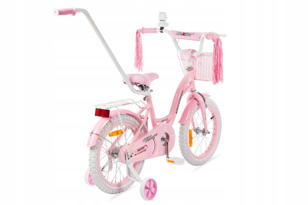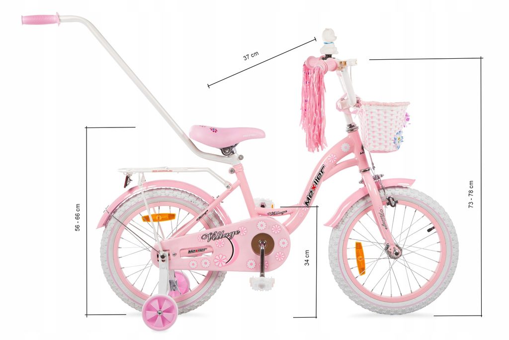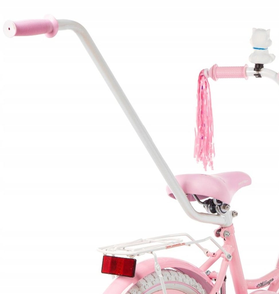 Dětské kolo s velikostí ráfků 16 palců je určeno pro nejmenší děti ve věku od 4 do 6 let s výškou do 120 cm. Kolo je opatřeno vodící tyčí a balančními kolečky, dítě se tedy bude cítit hned od první jízdy bezpečně a stabilně. Kolo je vybaveno 2 druhy brzd. Protisměrná brzda-torpédo umožnuje brzdit zpětným záběrem pedálů nebo lze použít přední pákovou brzdu. Proti nechtěnému namotání nohavice nebo tkaničky do řetězu má toto jízdní kolo kryt, který zakrývá celý řetěz.