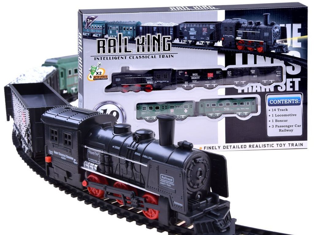 Mini vláčkodráha Rail King s lokomotivou na baterie učí dětí představivost a podporuje kreativitu. Vláčkodráha se skládá z celkem 19 součástí. Naleznete zde lokomotivu, která svítí, nákladní vagóny, osobní vagóny a koleje. Vše je vyrobeno z plastu bez ostrých hran. Hračka je určena pro děti od 36 měsíců věku.