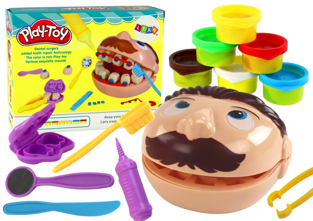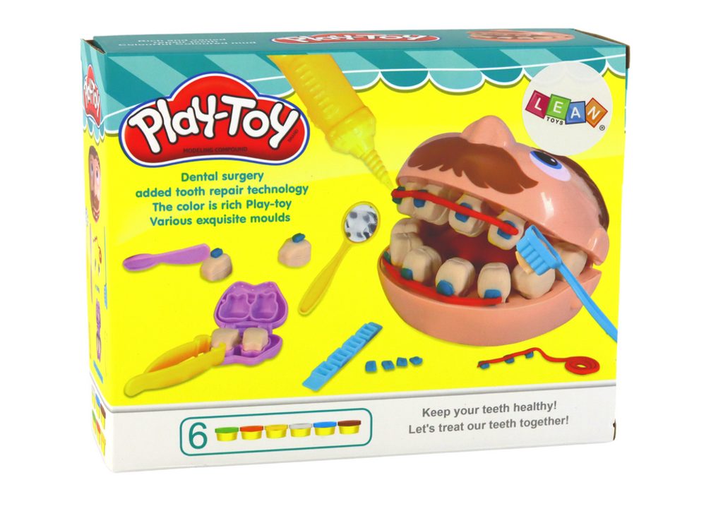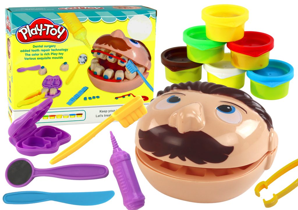 Dětská modelovací plastelína Dětský zubař je ideální hračkou pro všechny děti ale i dospělé. V sadě najdete kromě plastelíny v několika odstínech také hlavu, formu na vytváření zoubků, zrcátko, zubní kartáček a vrtačk. Plastelína s příslušenstvím poskytne Vašemu dítěti prakticky neomezené možnosti stát se skutečným zubařem. Výrazně rozvíjí manuální dovednosti. Hraní s plastelínou a různými vychytávkami bude skvělou podporou pro správný vývoj Vašeho dítěte. Hračka je určena pro děti od 3 let věku.