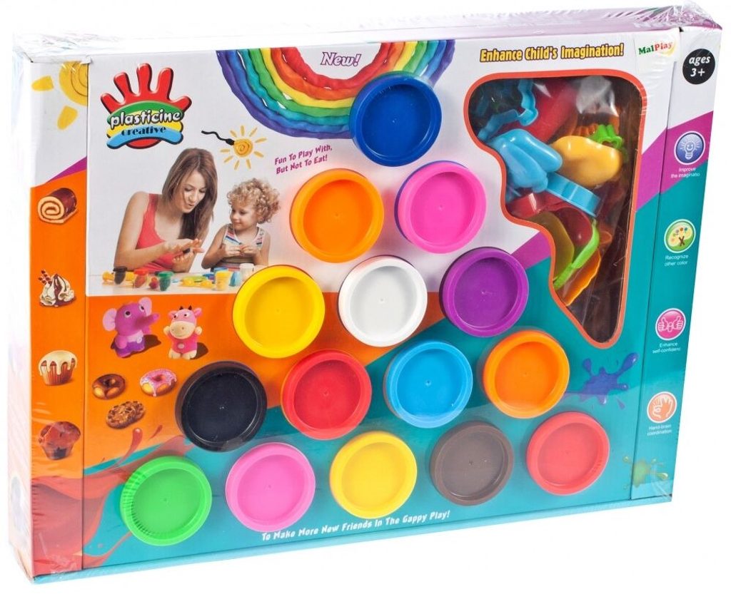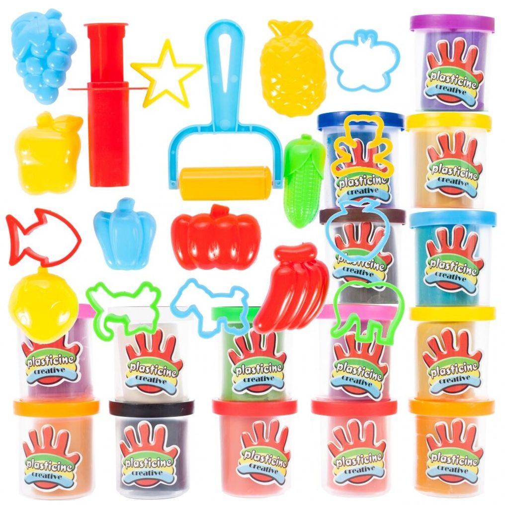 Dětská modelovací plastelína Creative Doh je ideální hračkou pro všechny děti ale i dospělé. V sadě je celkem 15 kelímků s plastelínou v v několika barvách. Součástí je také 16 kusů plastových formiček ve tvarech ovoce, zelenina a zvířátek. Nechybí také váleček a plnička. Plastelína s příslušenstvím poskytne Vašemu dítěti prakticky neomezené možnosti pro navrhování, stavění a skládání různých plastelínových předmětů. Výrazně rozvíjí manuální dovednosti. Hraní s plastelínou a různými vychytávkami bude skvělou podporou pro správný vývoj Vašeho dítěte. Hračka je určena pro děti od 3 let věku.