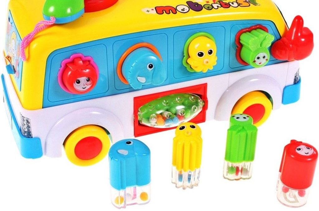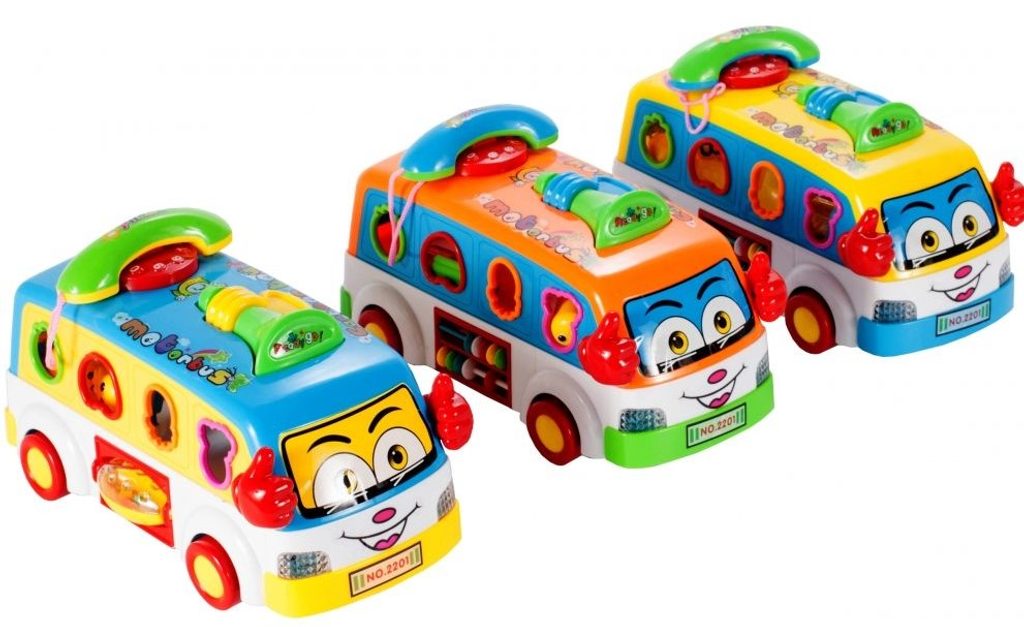 Veselý autobus Fun Bus se zvuky a světly je ideální hračkou pro ty nejmenší děti. Během jízdy svítí a přehrává melodii. Na střeše je umístěný telefon se sluchátkem a tlačítko ve tvaru trubky, které spouští zvuk píšťalky. Nárazem na překážku změní směr. Hračka je určena pro děti od 36 měsíců věku.